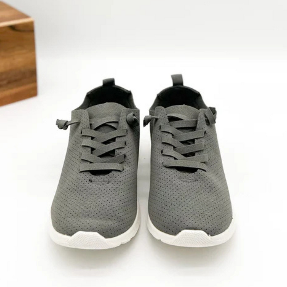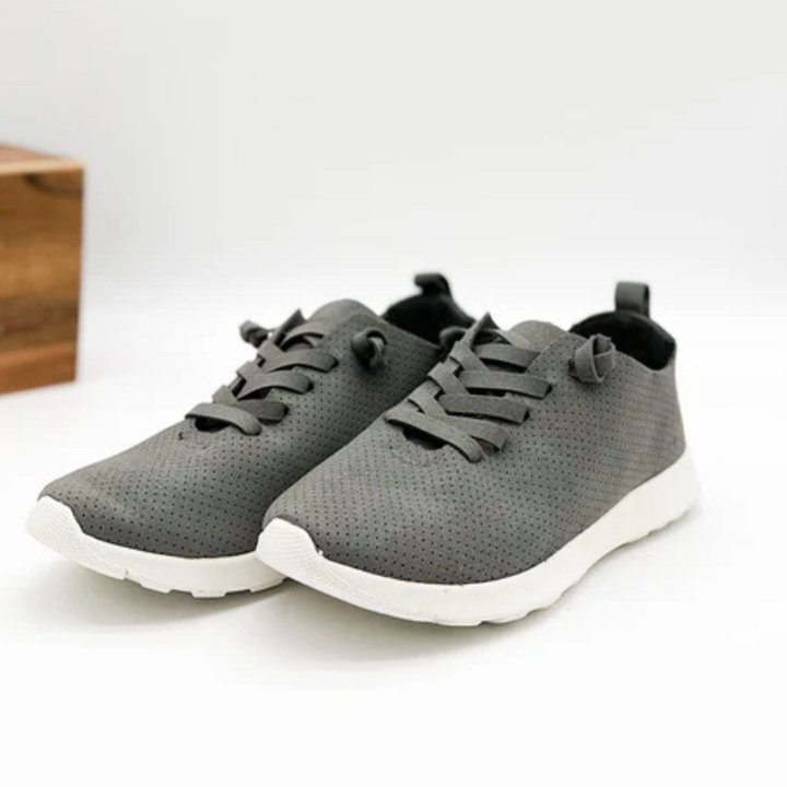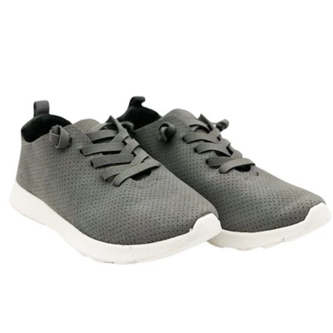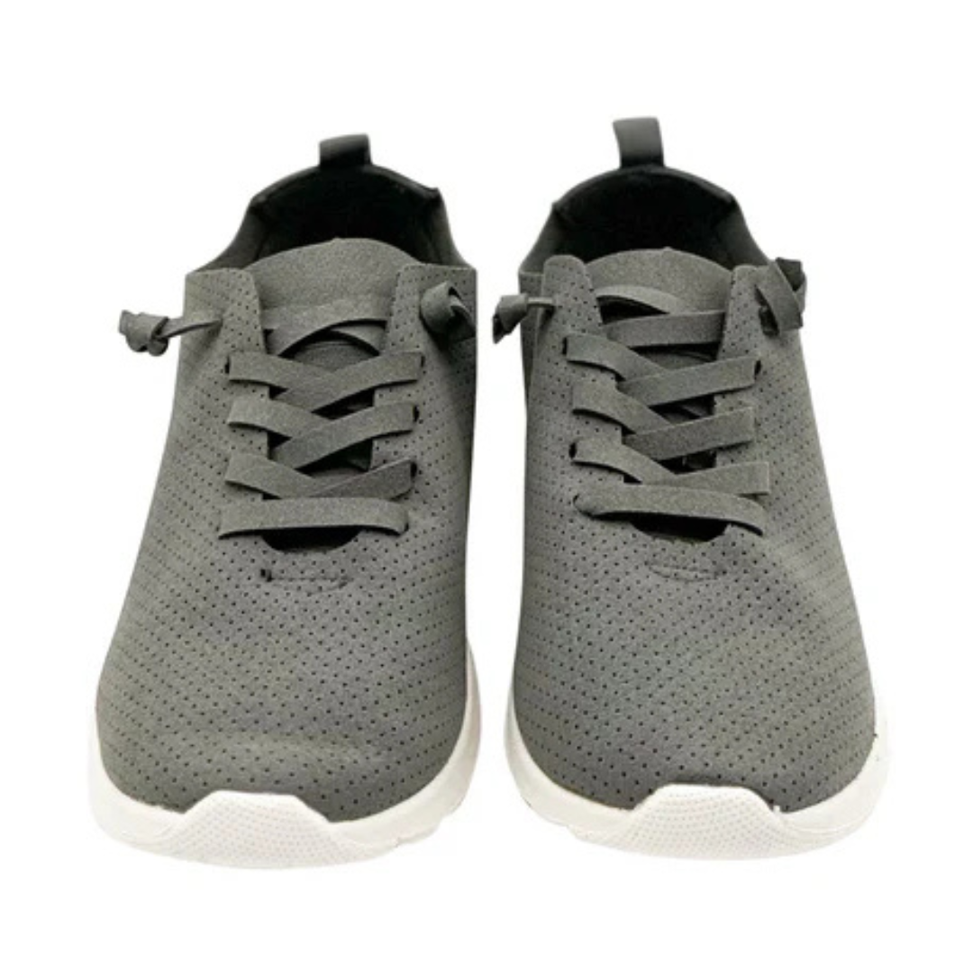 Discover unmatched comfort and style with the Mayo Sneaker in Grey. Designed with a slip-on fit, faux laces, and a blend of faux suede and faux leather, these sneakers are ideal for everyday wear. Perfect for wide feet—consider sizing up half a size for the best fit. Step out effortlessly in the Mayo Sneaker, where convenience meets fashion.