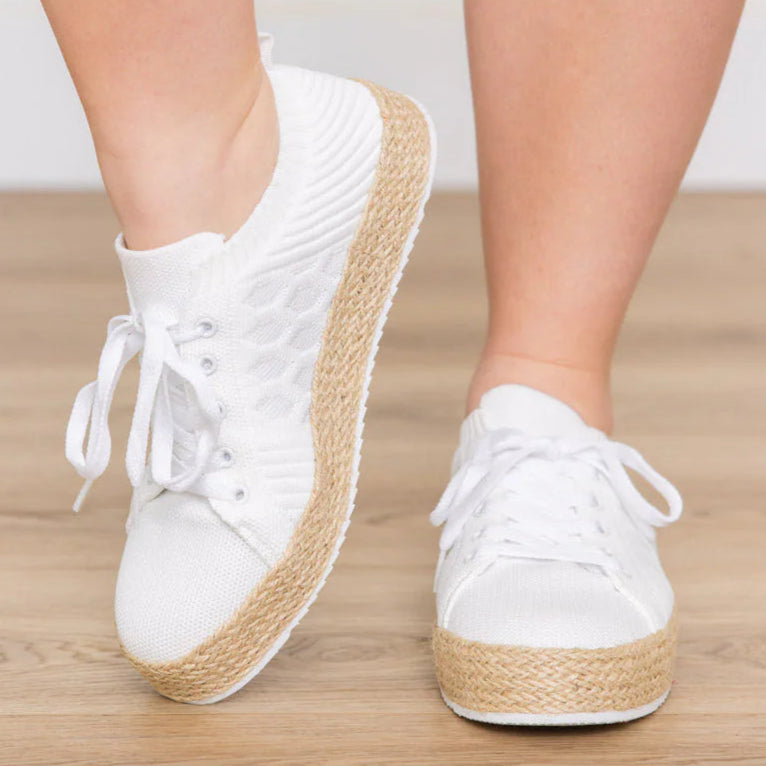 Step into the day one step at a time with the Yaras sneakers! Featuring a captivating knit body, an espadrille platform sole, and functional tie laces, you'll feel just as amazing as you look! With a 1 inch platform, jute base, and true to size fit, these sneakers are a must-have in your wardrobe. Don't hesitate - snatch them up now!