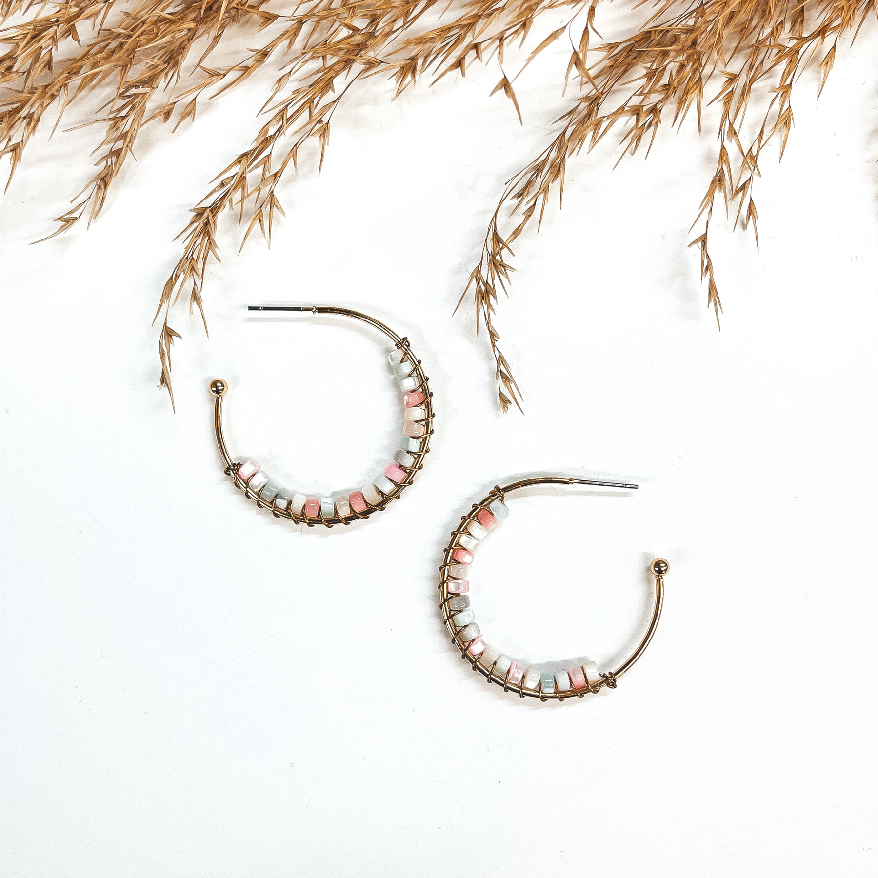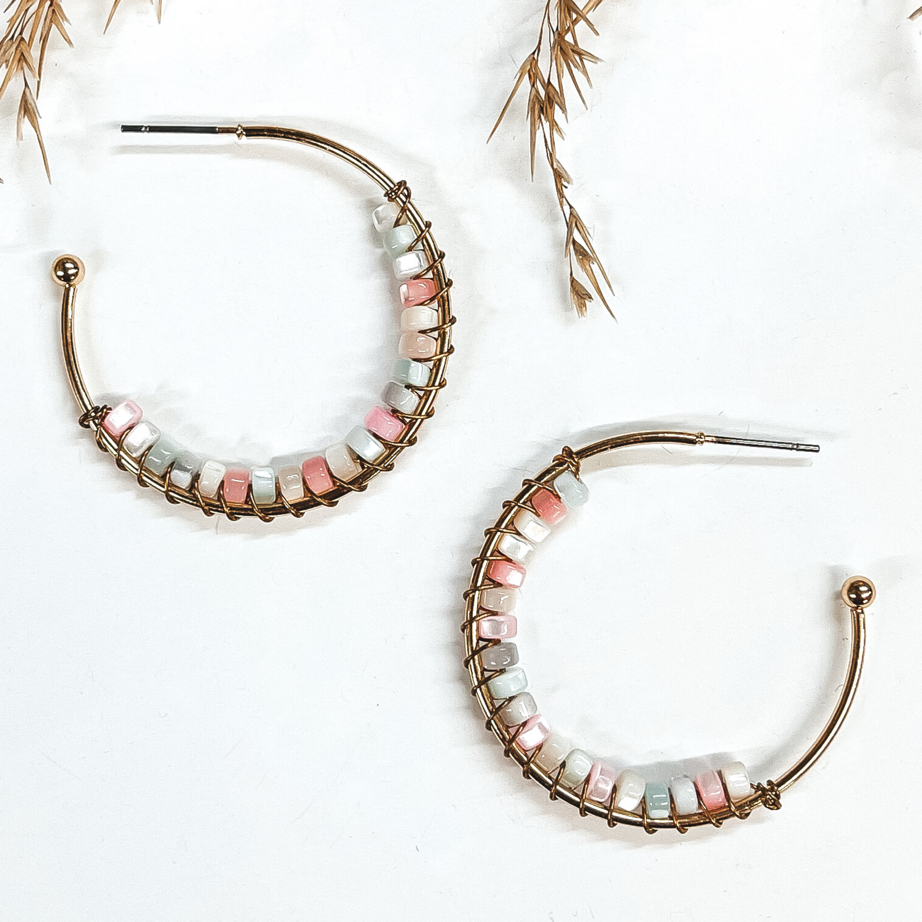 Oceans Away Open Ended Circle Hoops with Mother of Pearl Beads in Multicolor