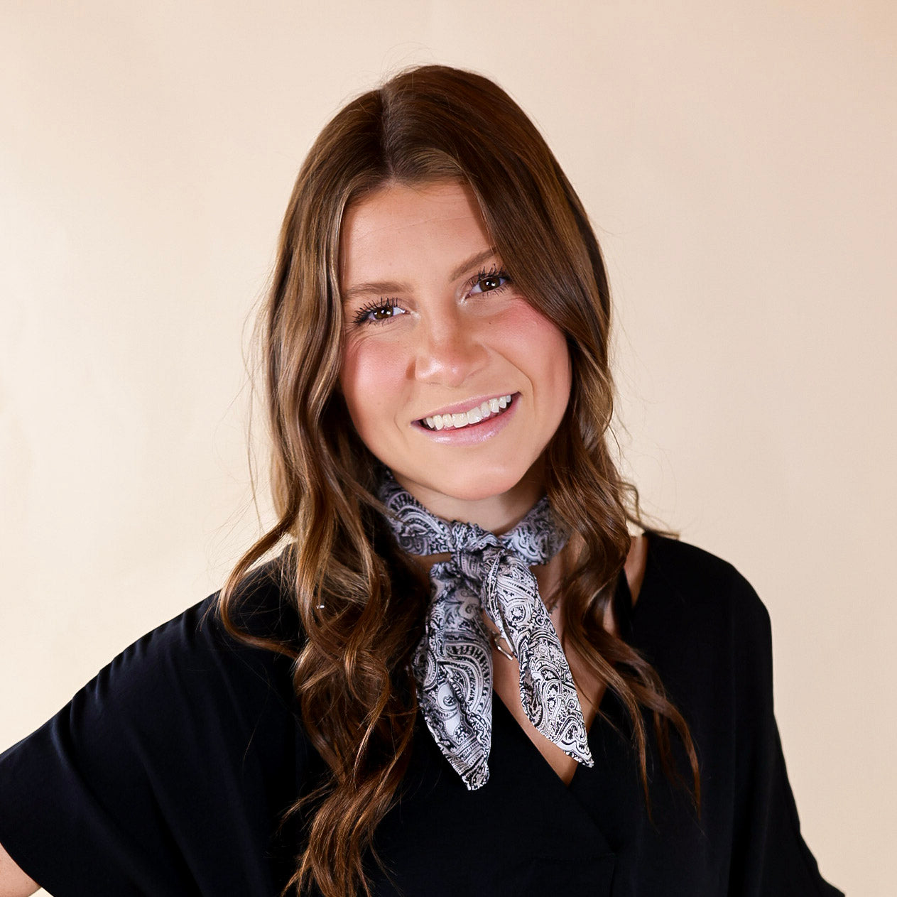Wyoming Traders | Mini Calico Acanthus Silk Wild Rag in Black and White