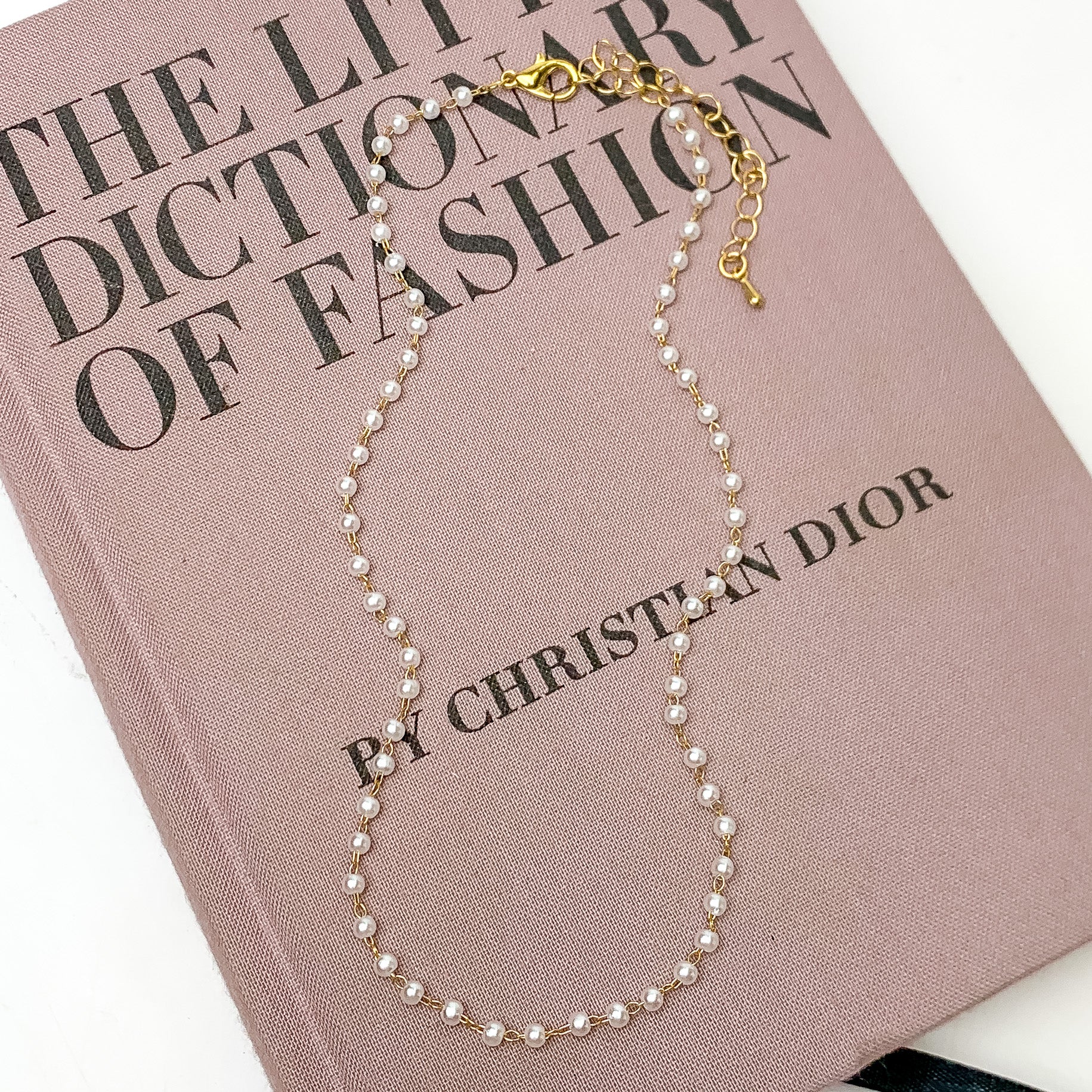 Beautiful pearl linked necklace in gold tone. Perfect for any daytime look, or layer it up for a night out.