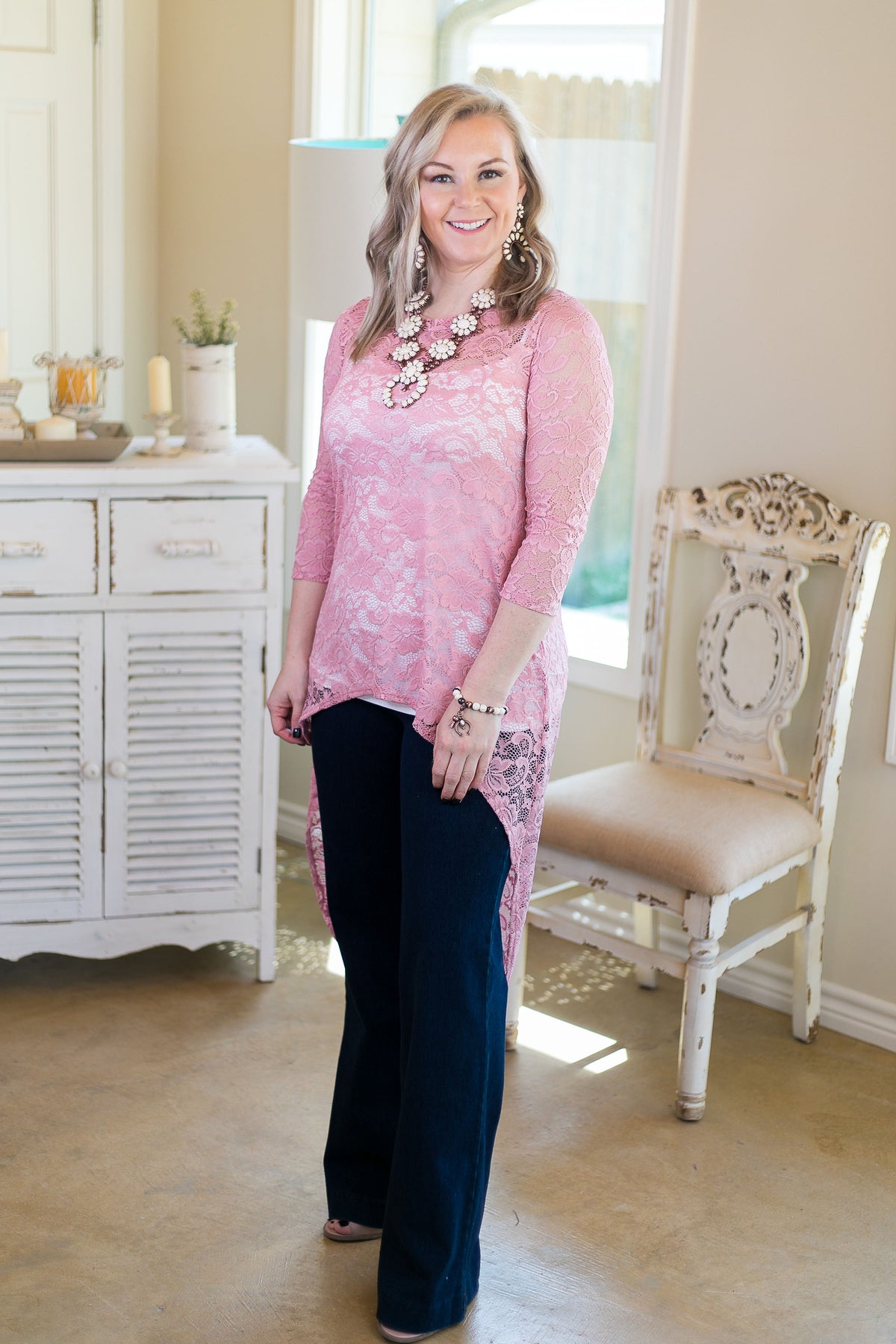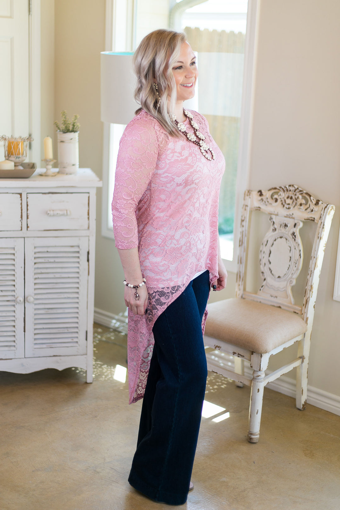 Last Chance Size S, M, & L | My Next Escapade Lace High Low Top in Blush Pink