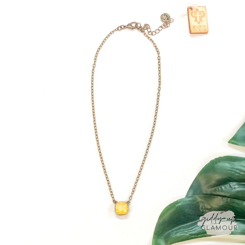 Pink Panache | Bronze Chain Necklace with Cushion Cut Crystal in Buttercup Yellow