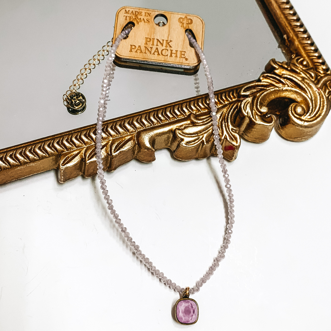 Pink Panache | Lavender Crystal Beaded Necklace with Lilac Cushion Cut Crystal