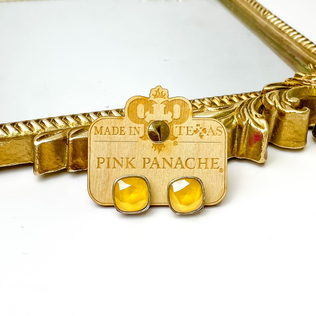 Pink Panache | Silver Stud Earrings with Cushion Cut Crystals in Buttercup Yellow