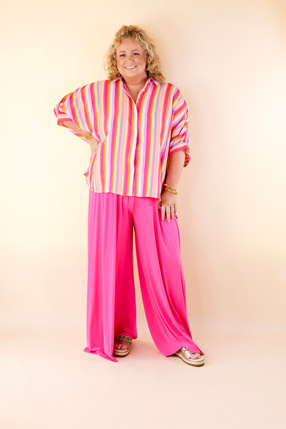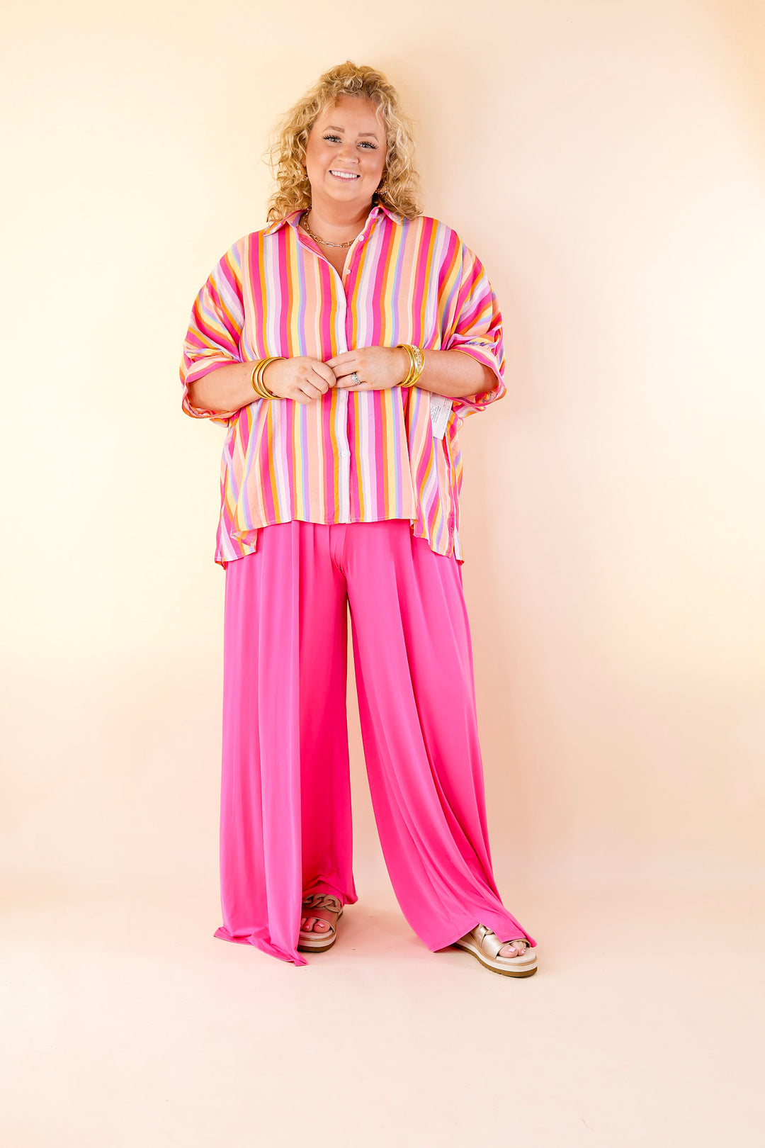 Plus Size | Urban Wonders Wide Leg Pants in Magenta Pink