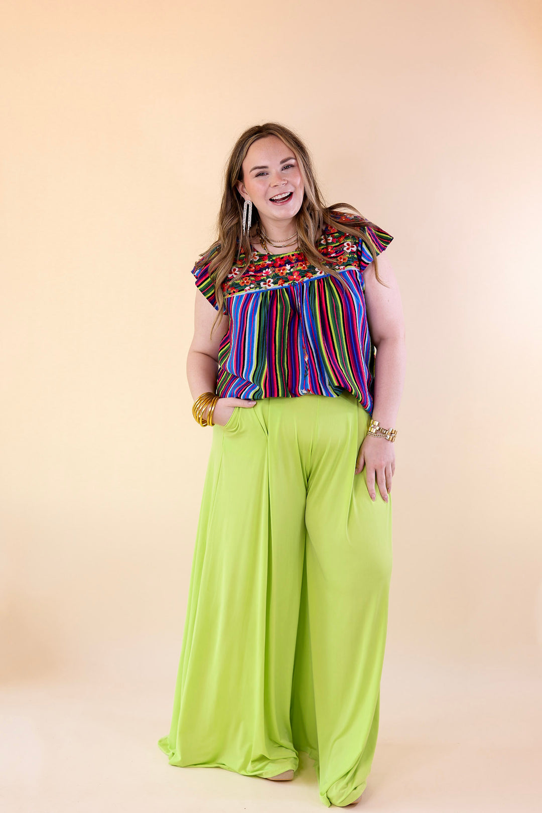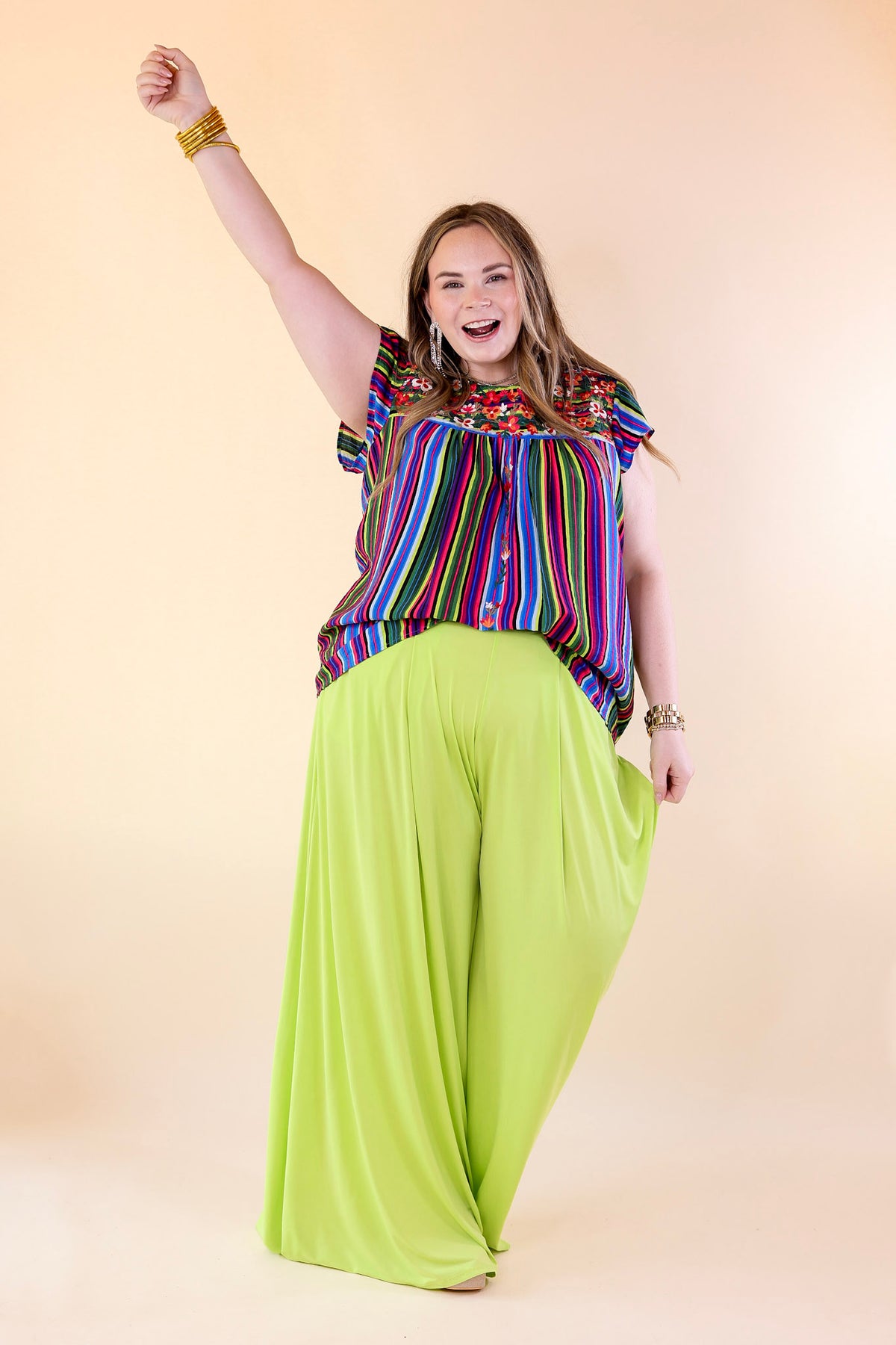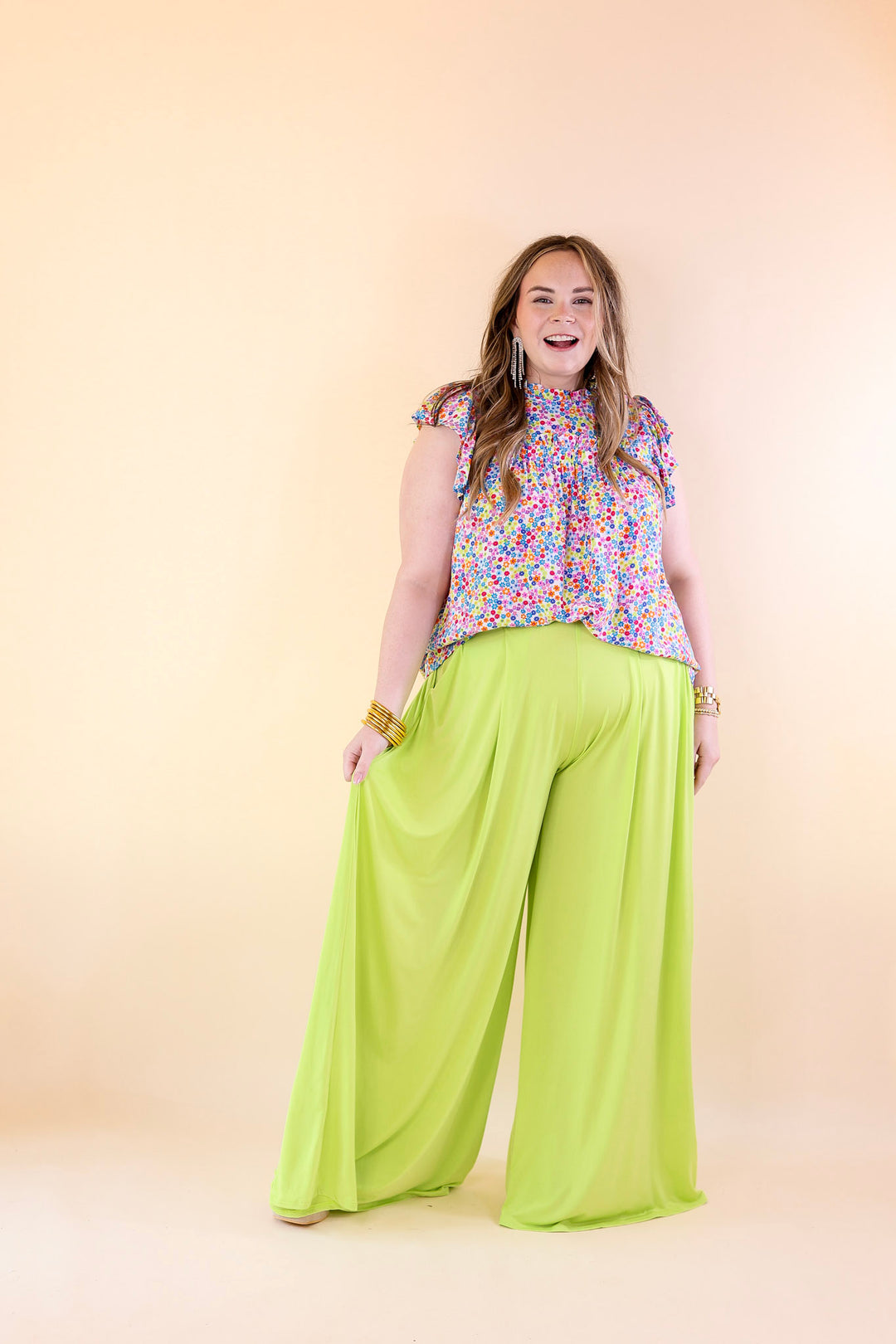 Plus Size | Urban Wonders Wide Leg Pants in Neon Lime