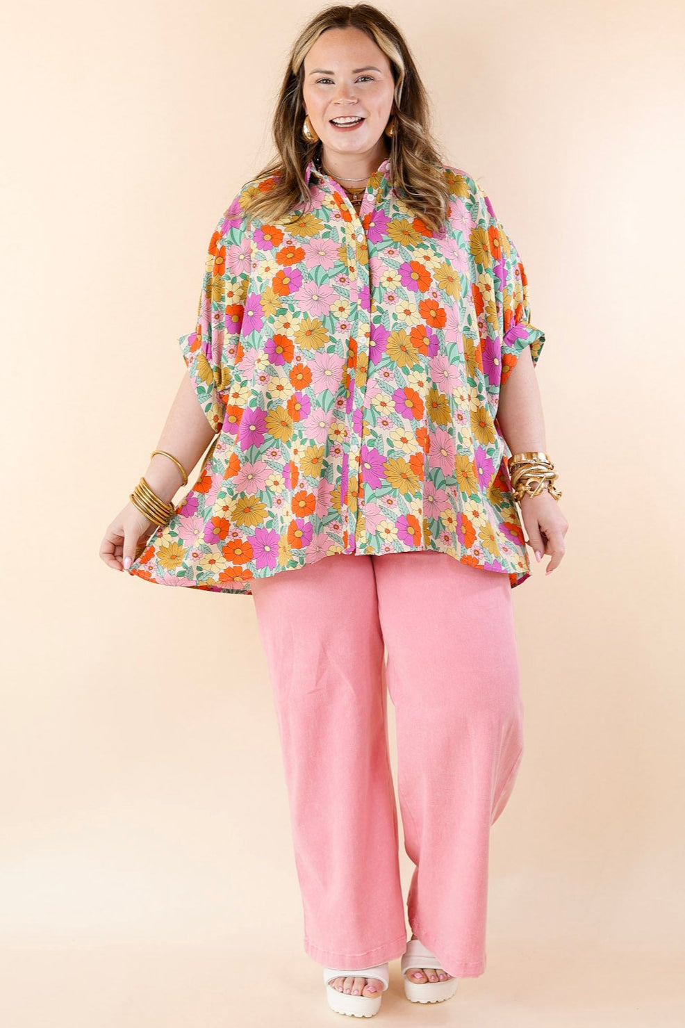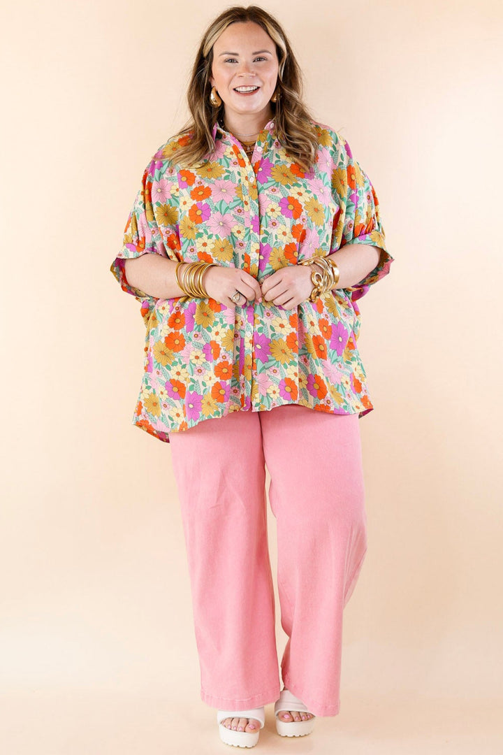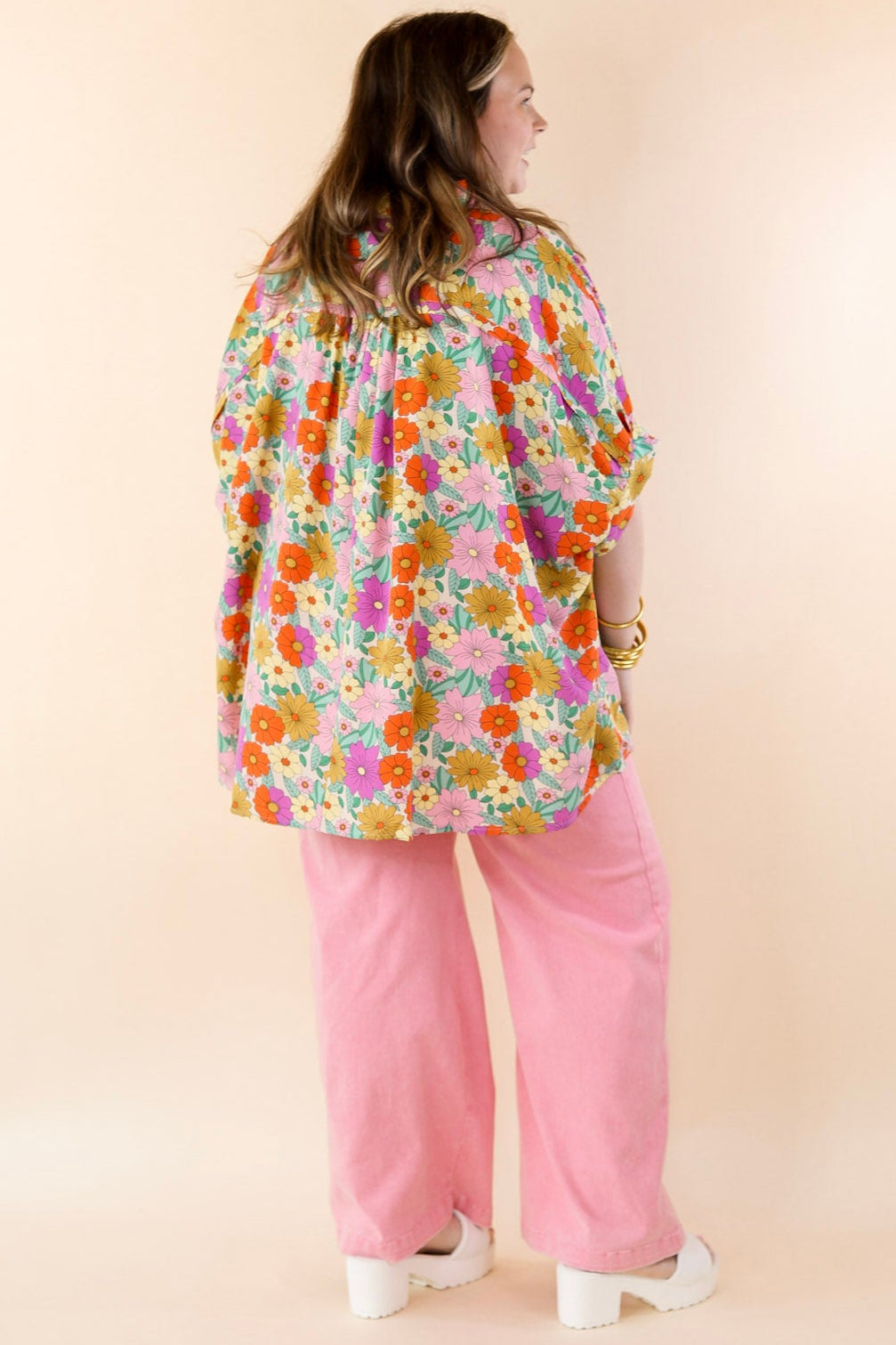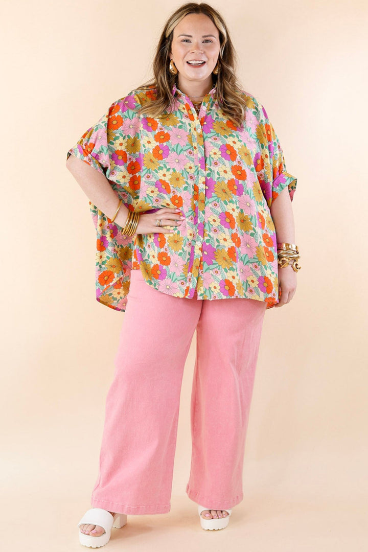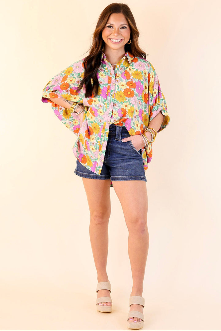 Introducing our "Pretty Days" top, a must-have for your spring wardrobe! Embrace sunny days with its stunning floral print and elevate your style with its button-up front and chic collar neckline. Complete with short poncho-style sleeves, this top exudes effortless elegance and is perfect for any occasion.
