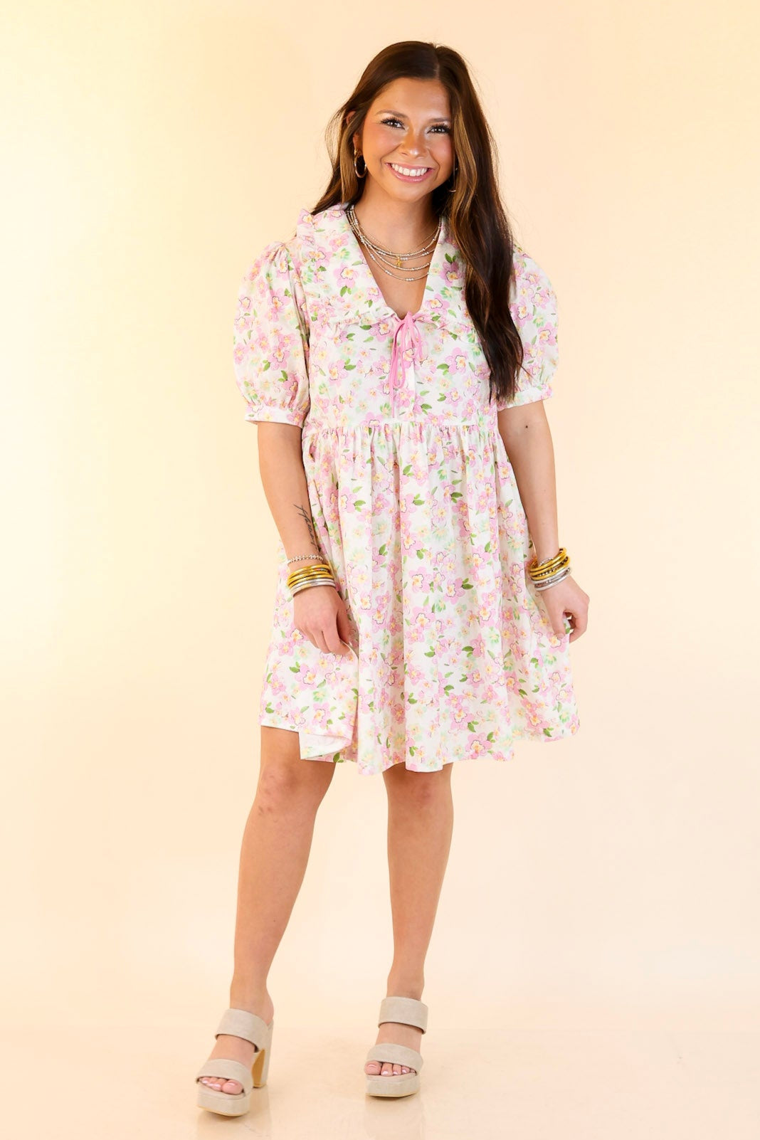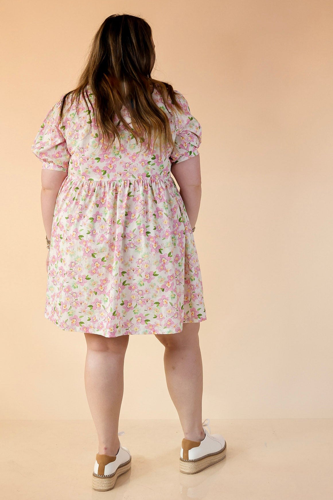 Pretty in Petals Pink Floral Babydoll Dress with Peter Pan Collar in Cream