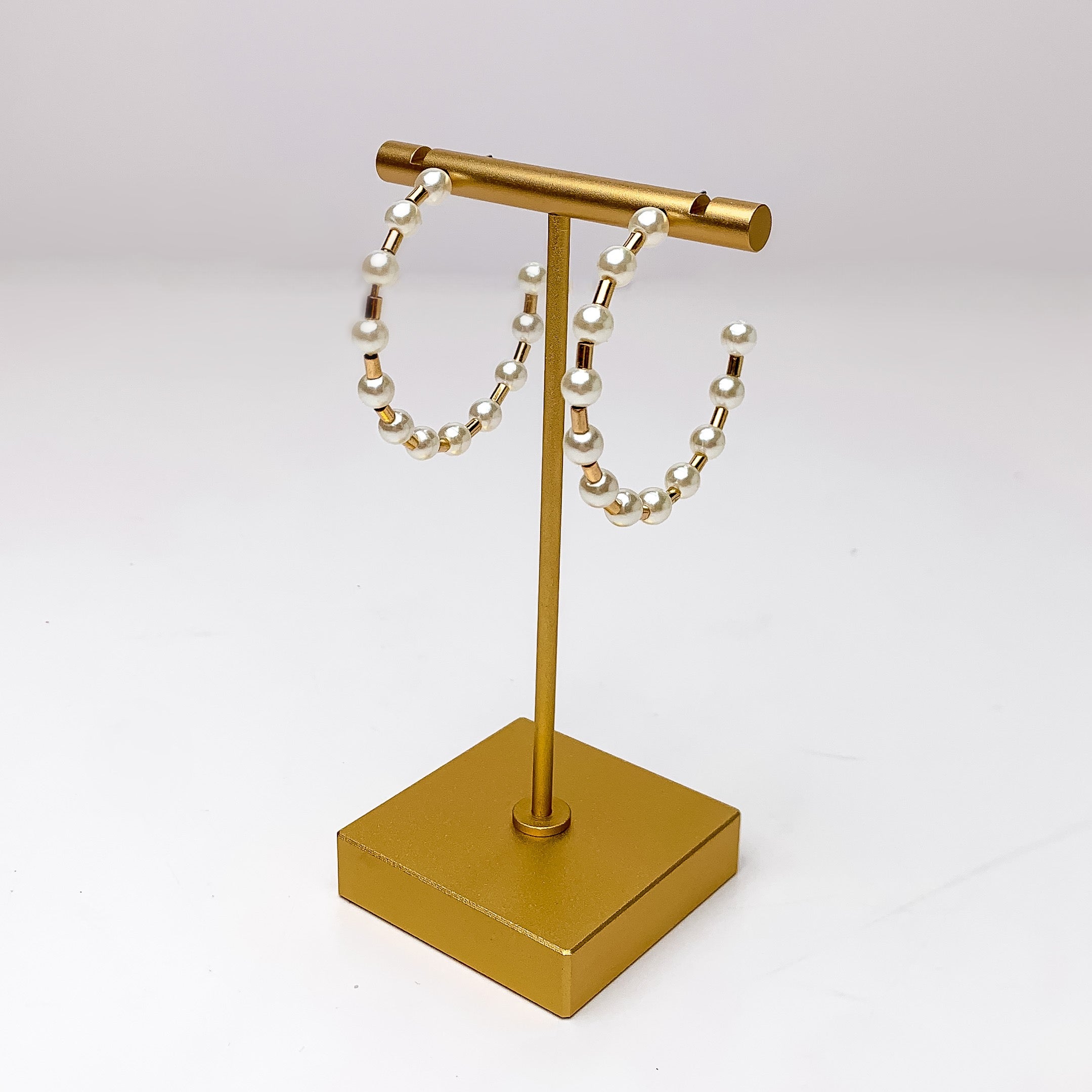 Pretty Pearl Medium Hoop Earrings in Gold Tone