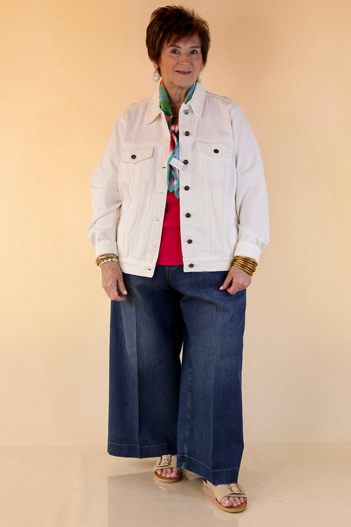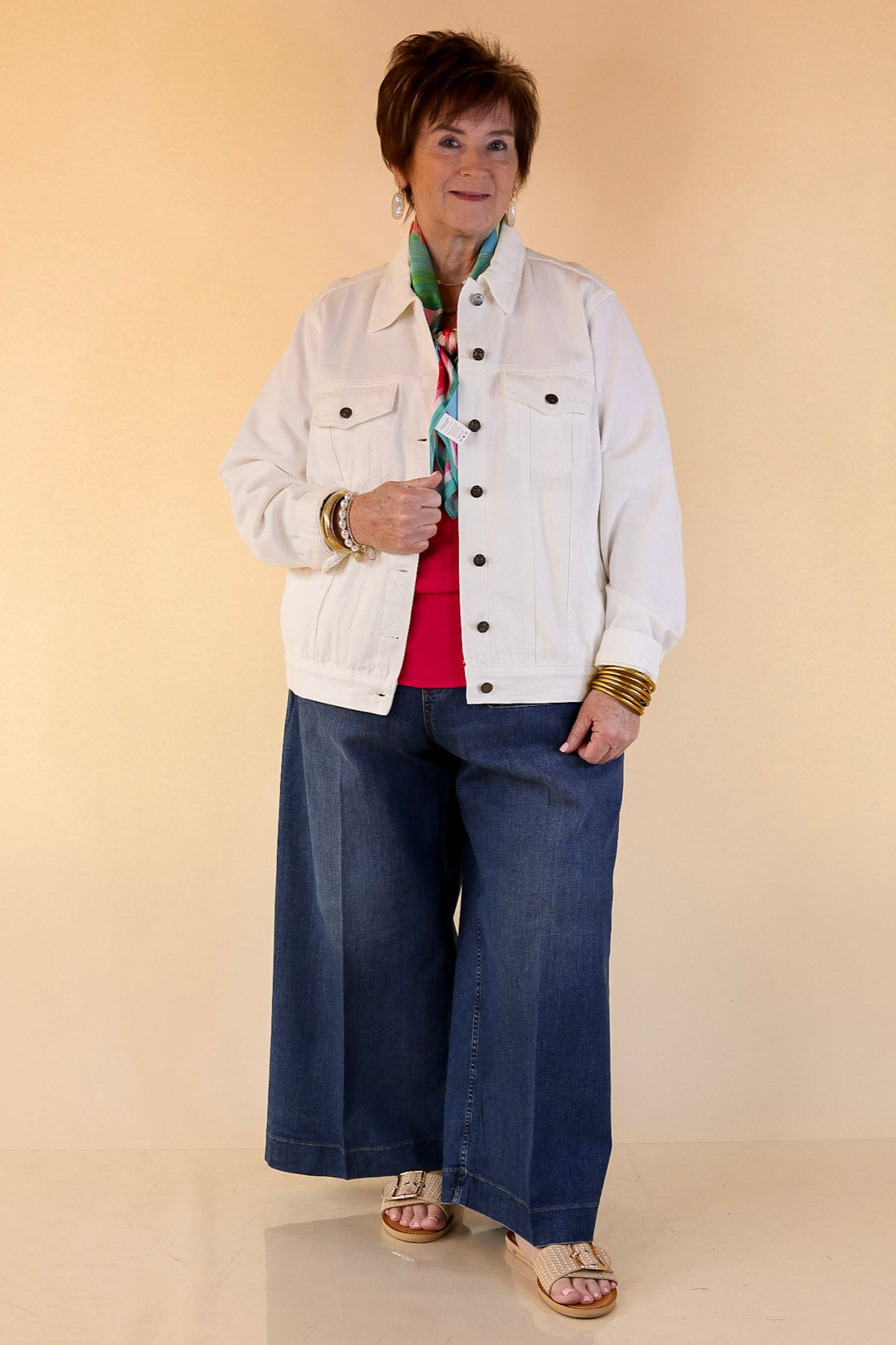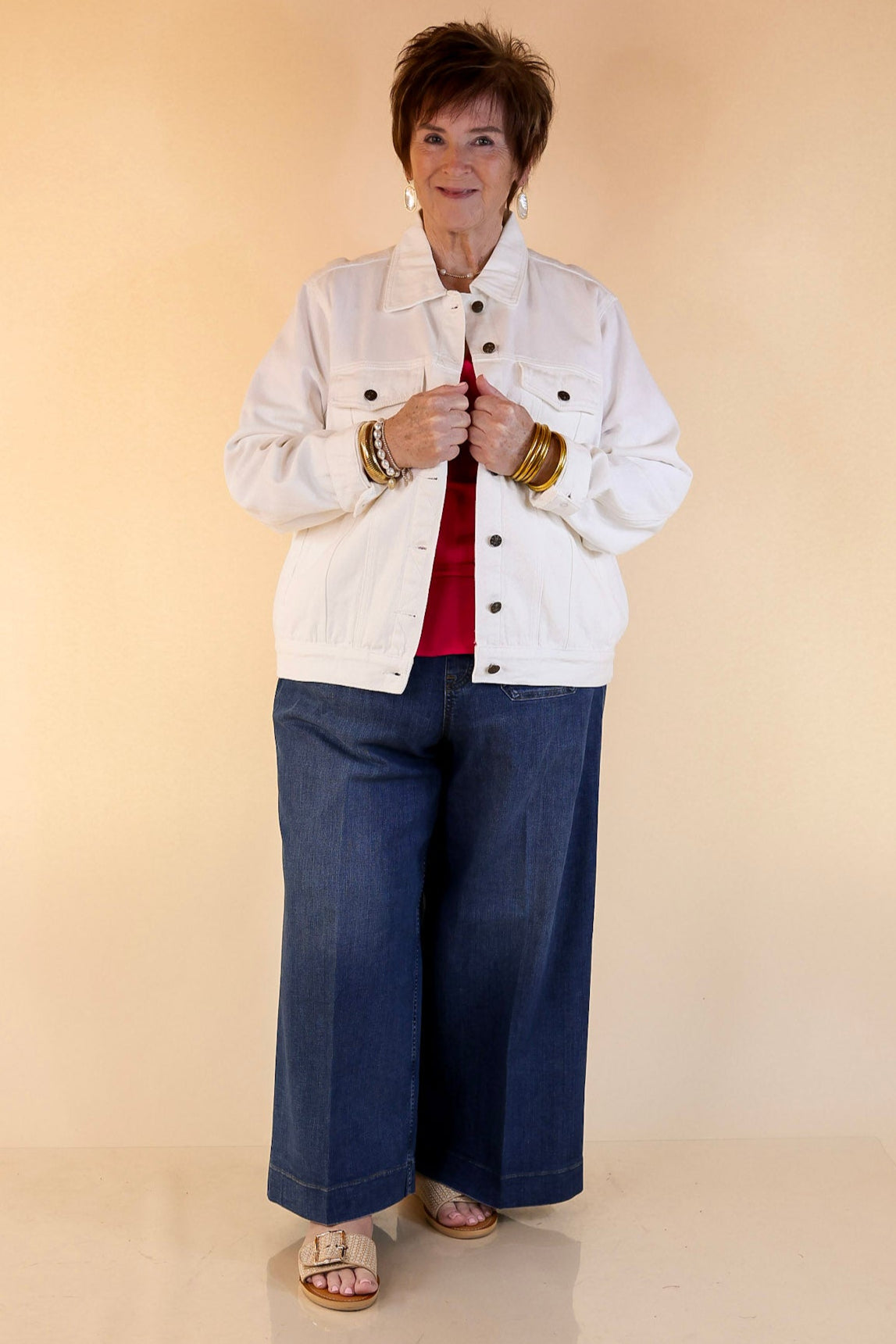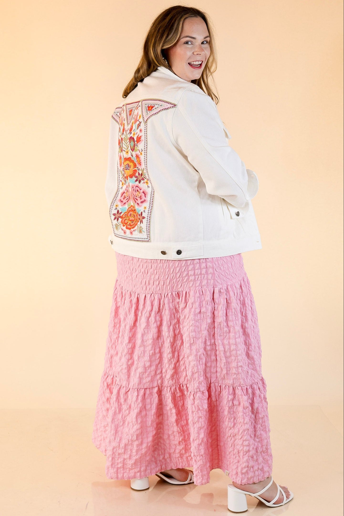 Prime Time Floral Embroidered Denim Jacket With Pockets in White