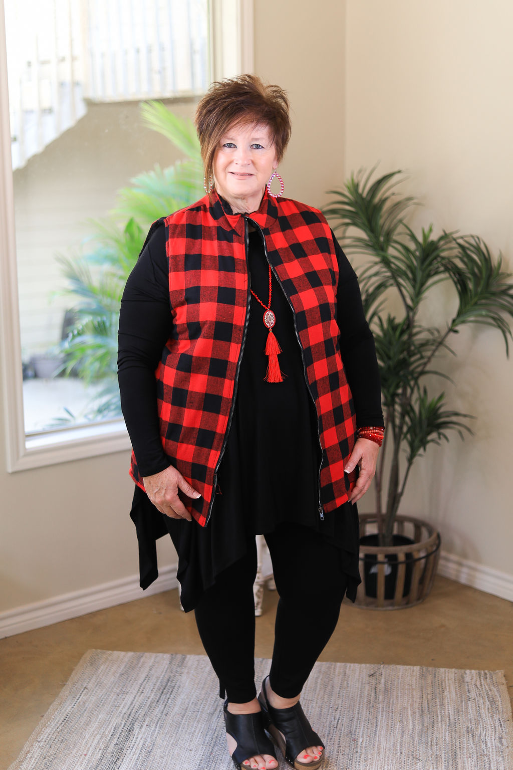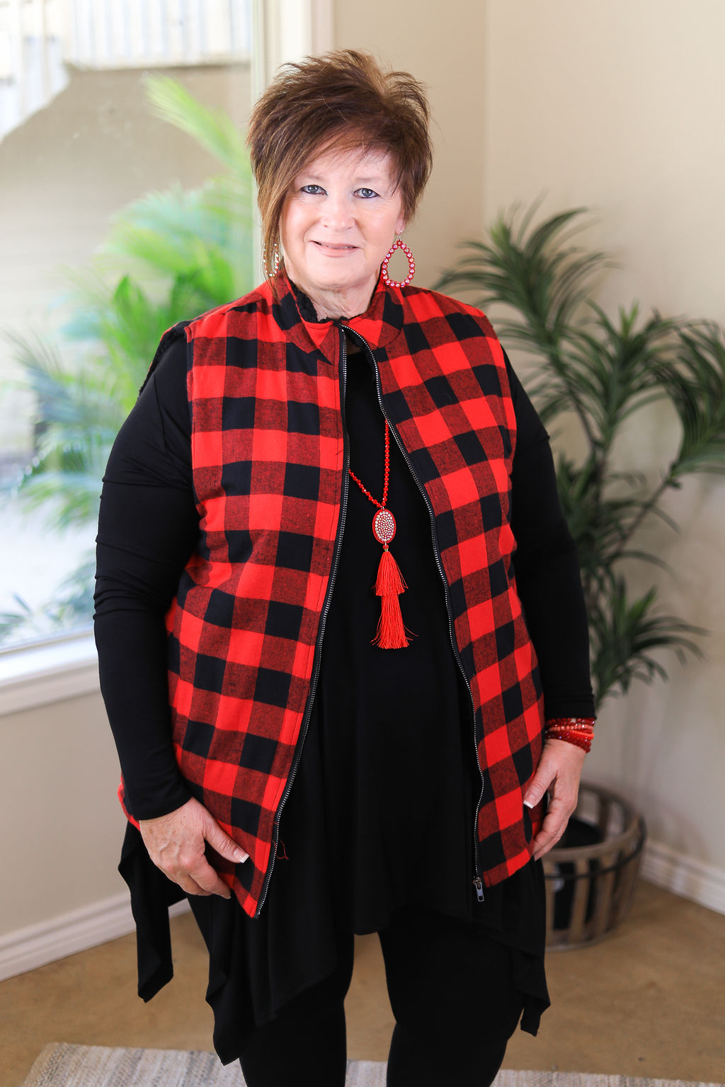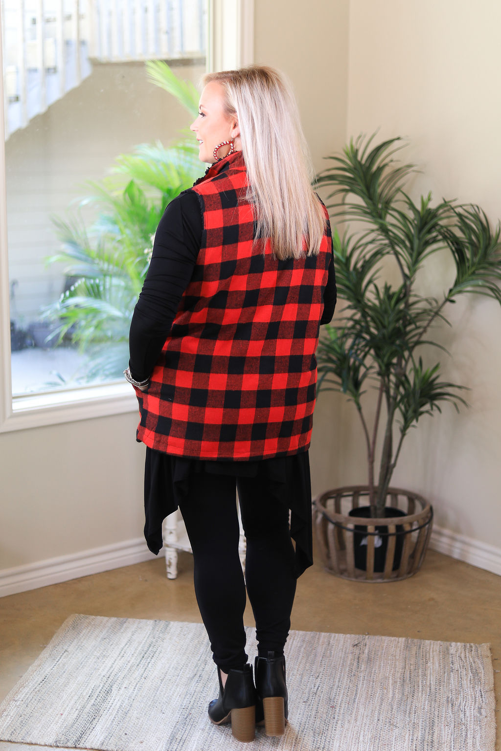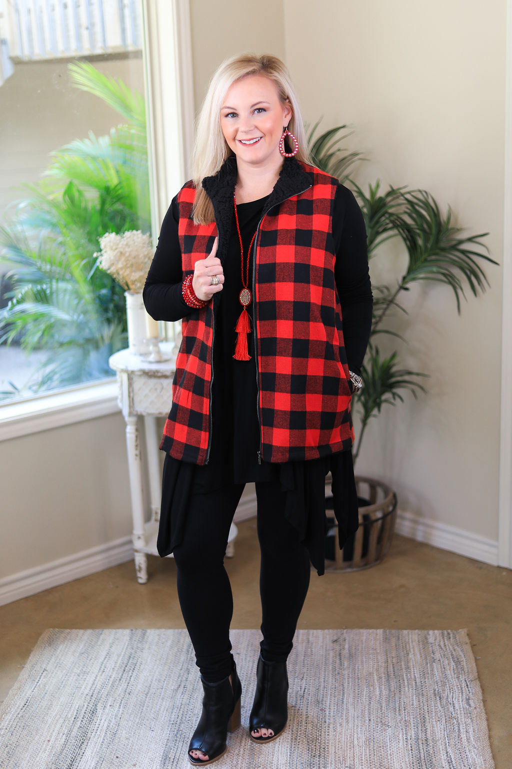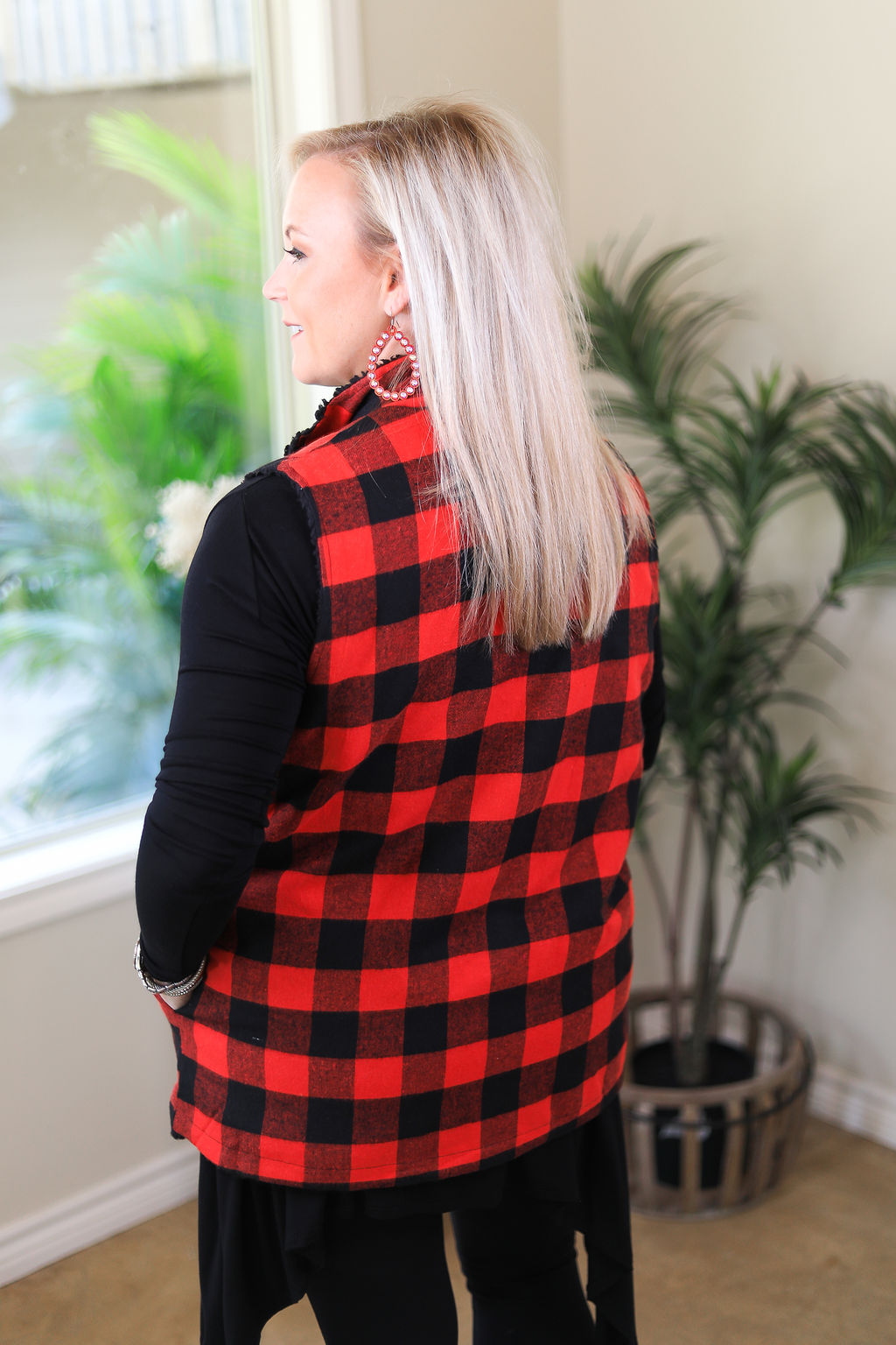 Last Chance Size Small | Meet Me In Aspen Buffalo Plaid Sherpa Lined Zip Up Vest in Red