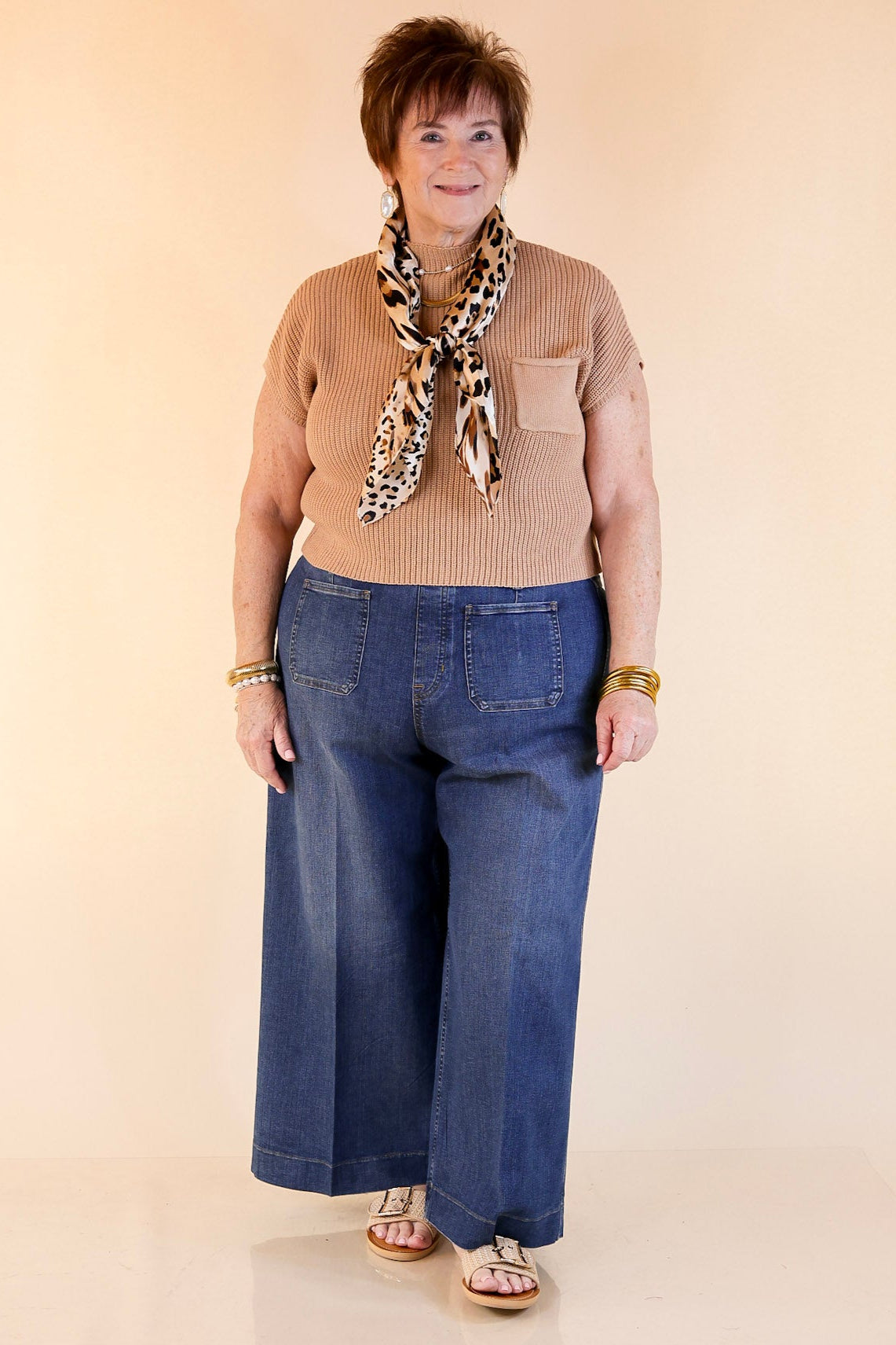 Repeat Worthy Cap Sleeve Cropped Sweater with Front Pocket in Light Brown