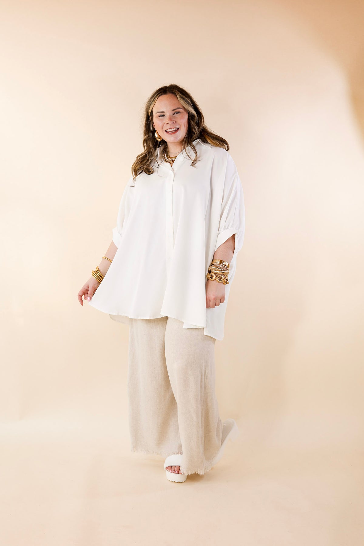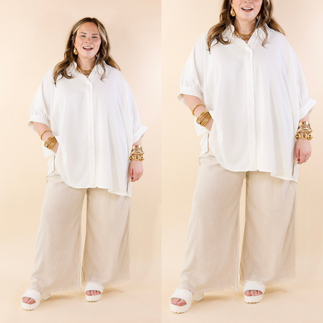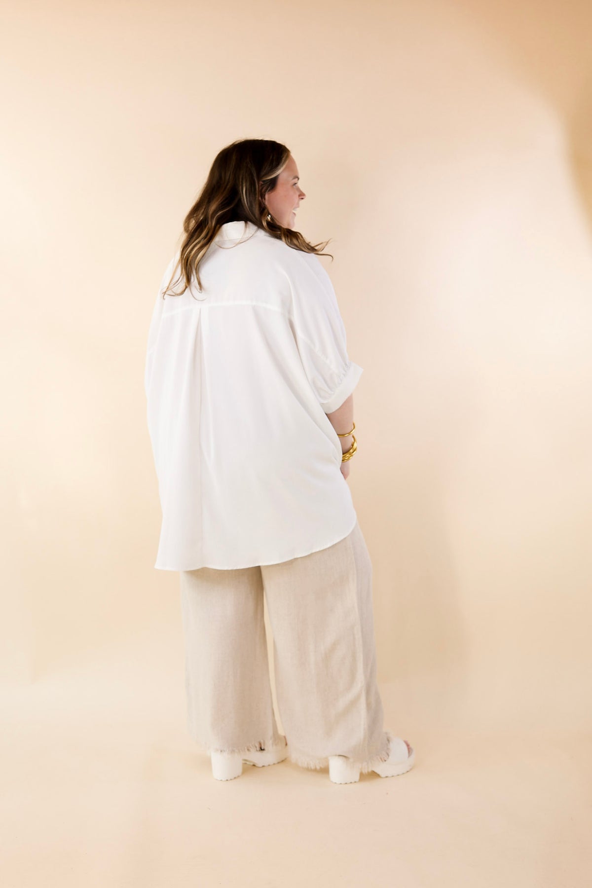 Right On Cue Elastic Waistband Cropped Pants with Frayed Hem in Beige