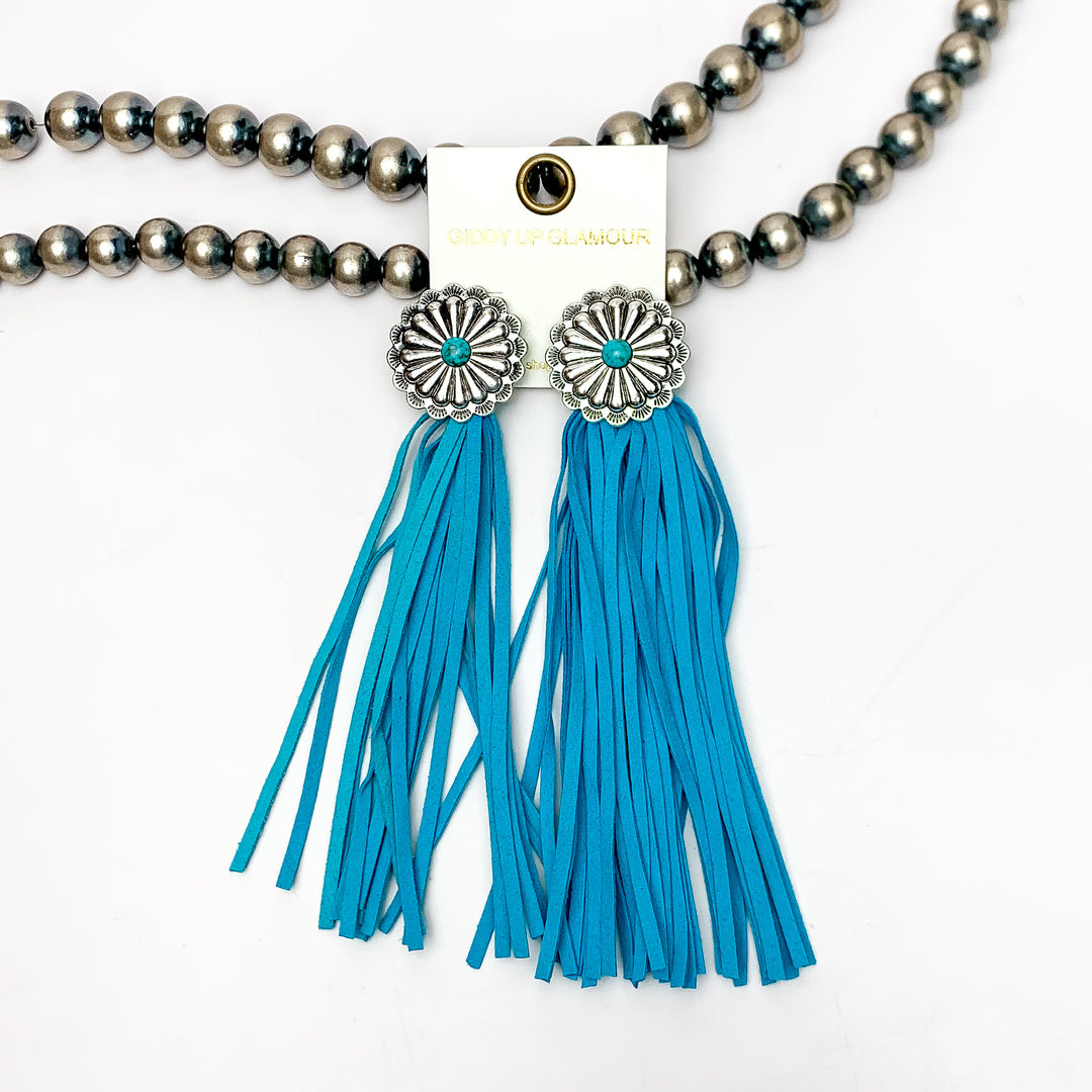 Rodeo Runway Tassel Earrings in Turquoise Blue