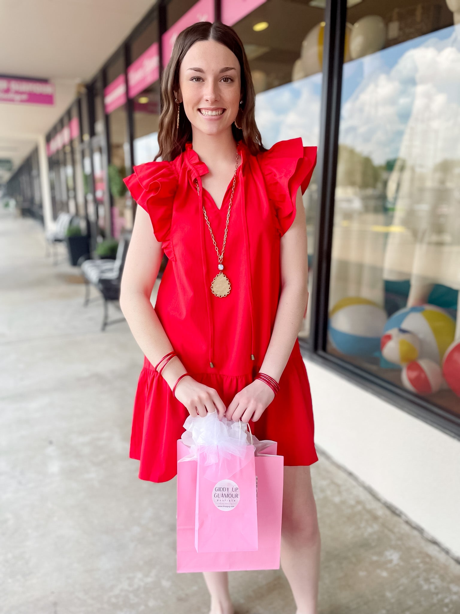 Last Chance | Size 1XL | Powerful Love Ruffle Cap Sleeve Dress with Keyhole and Tie Neckline in Red