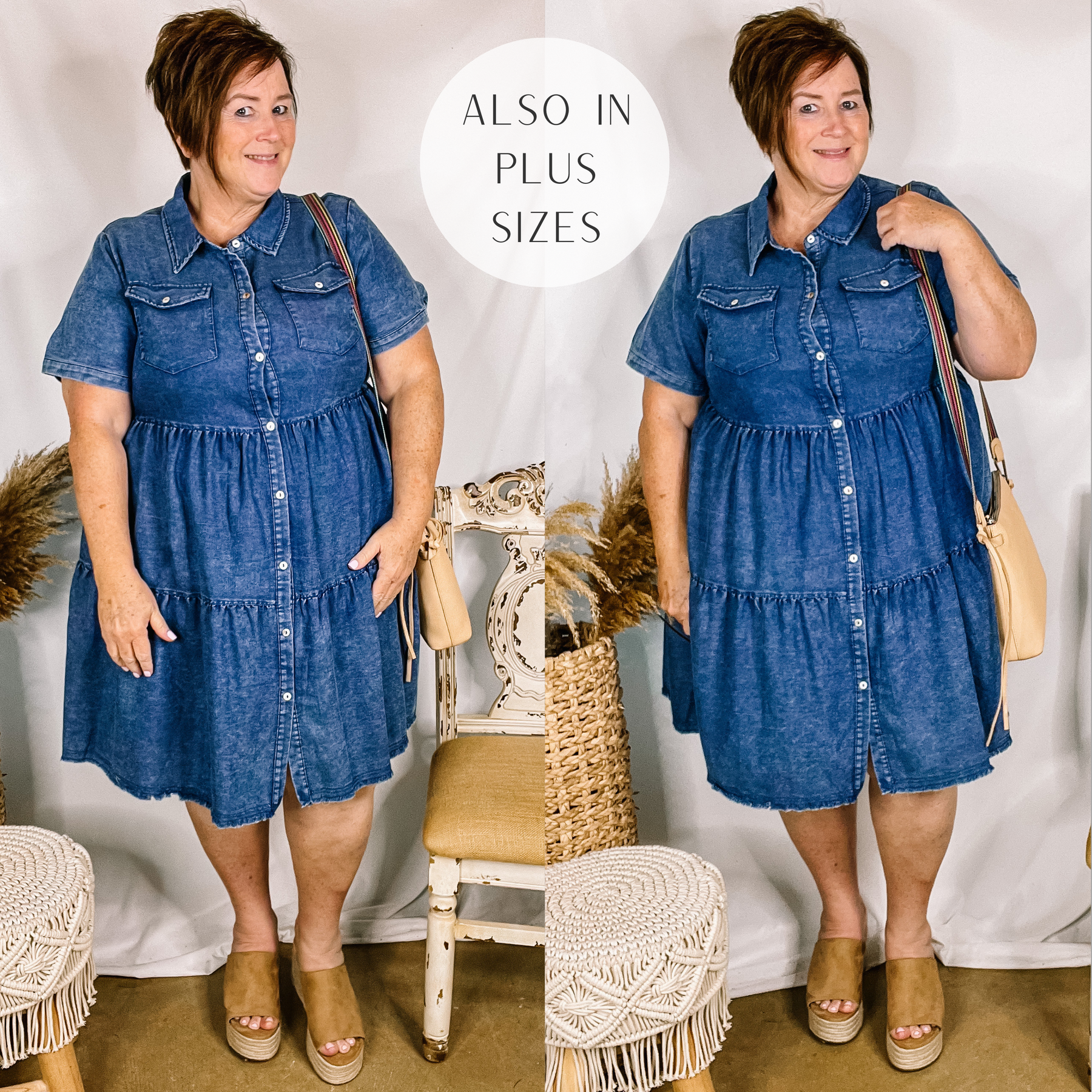 Last Chance Size Small & Medium | Still The One Ruffle Tiered Button Up Dress in Dark Wash