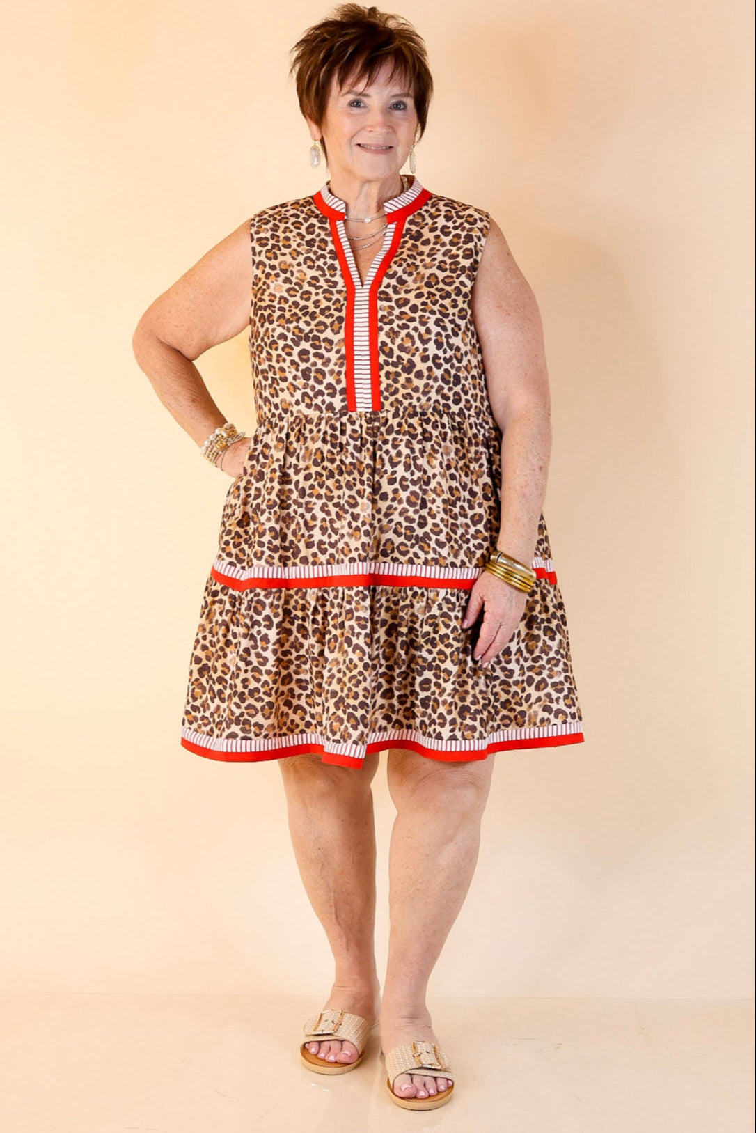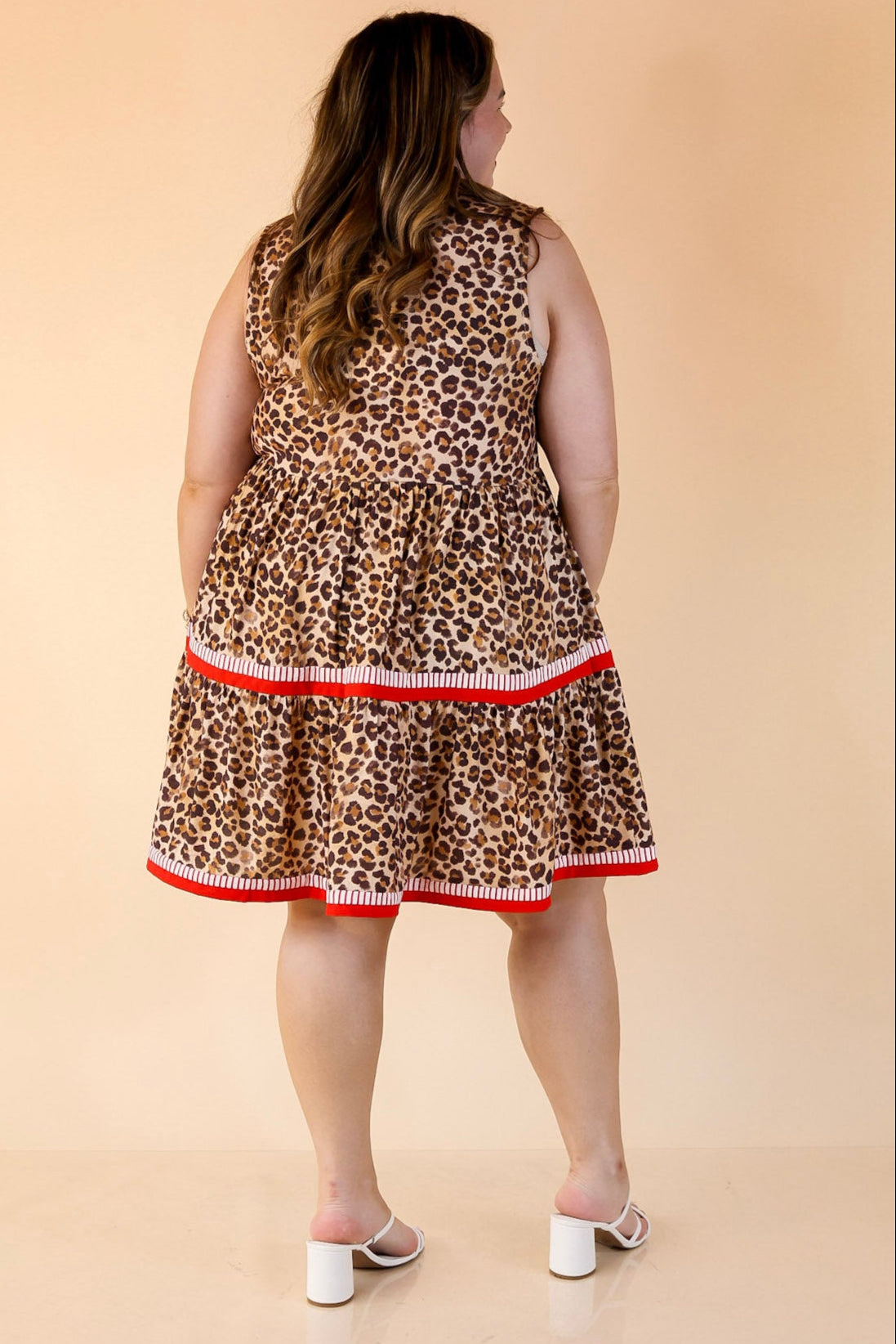Scene Stealer Sleeveless Leopard Print Dress with Red Accents