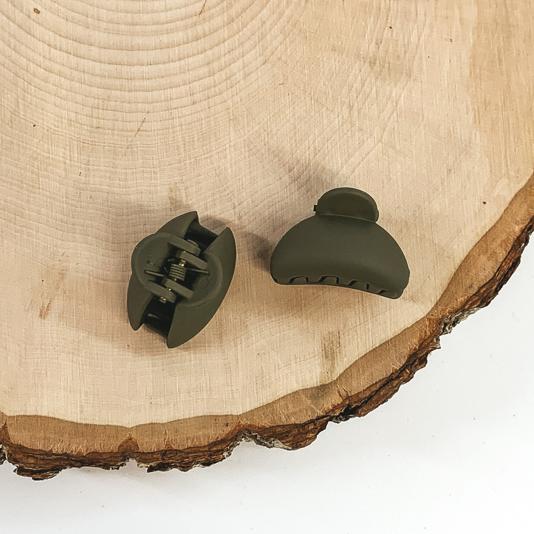 Set of 2 | Mini Oval Claw Clips in Matte Olive Green