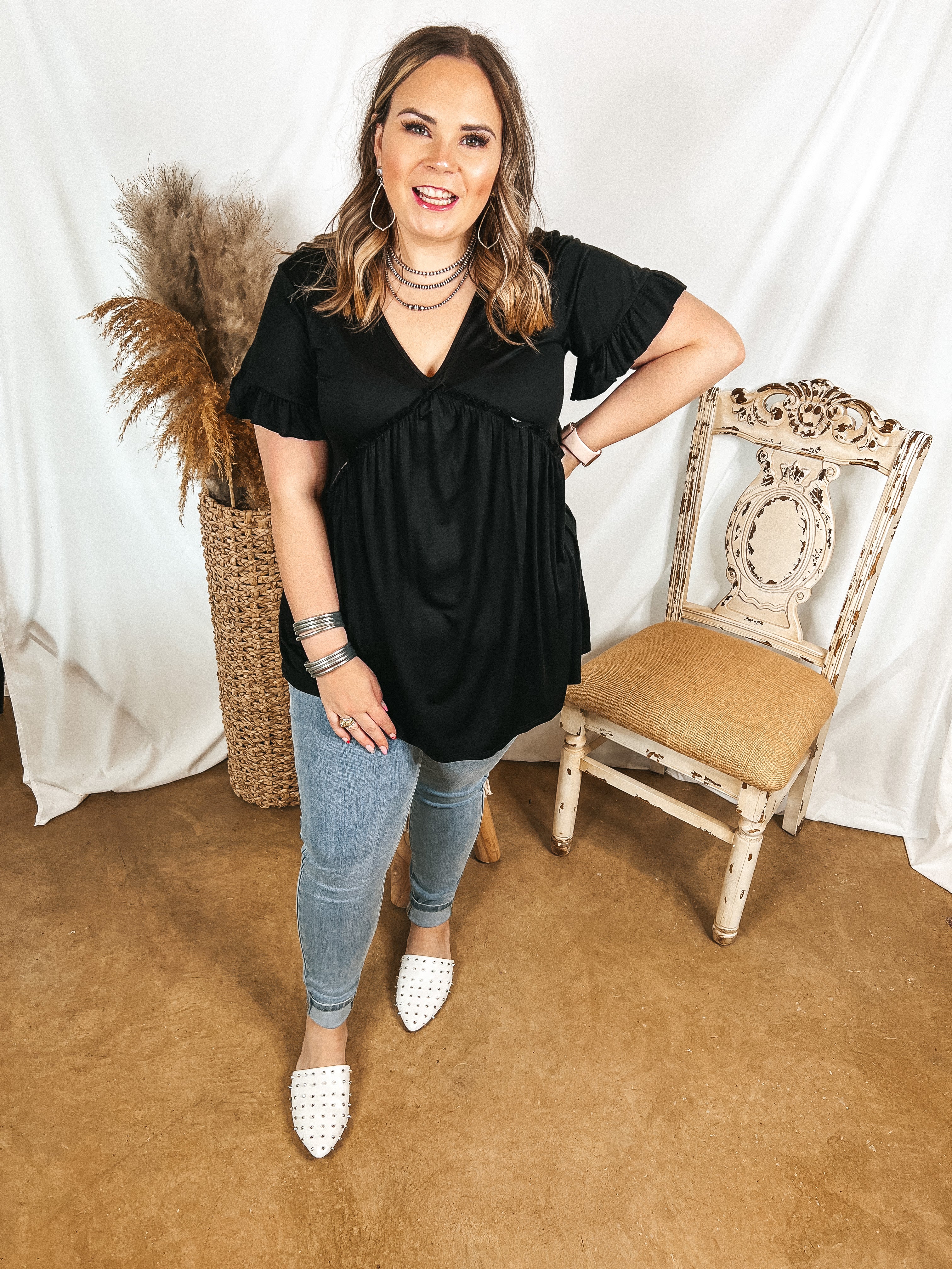 Upon Request Ruffle Detailed Short Sleeve Babydoll Top in Black - Giddy Up Glamour Boutique
