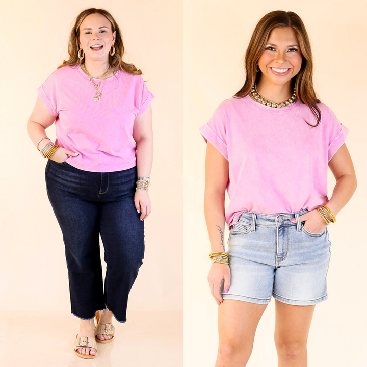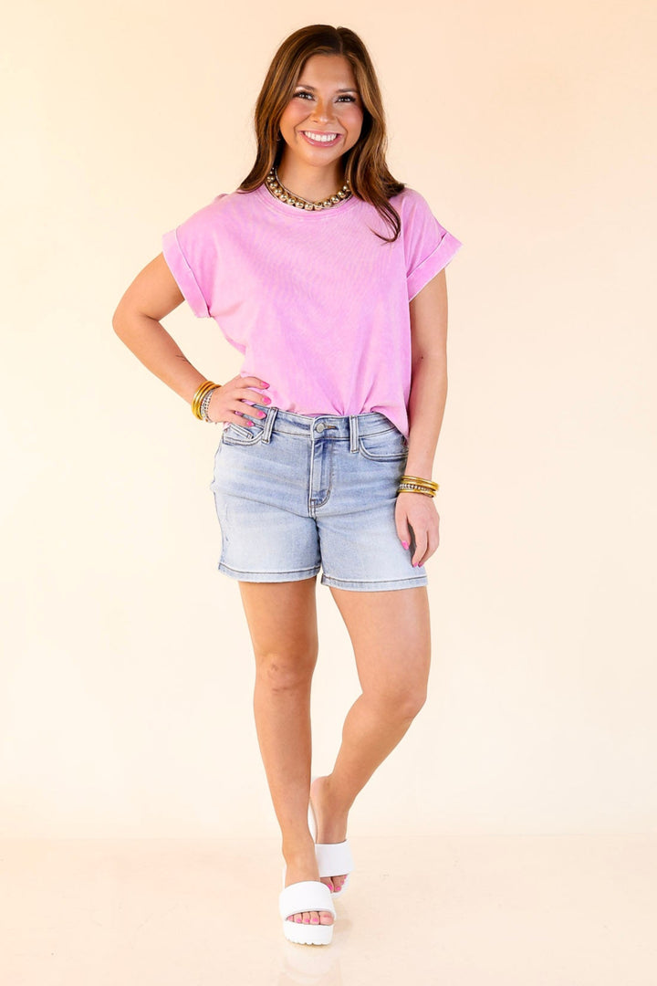 Easy Chic Short Sleeve Cropped Tee in Light Purple