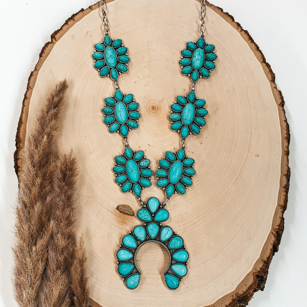 Silver and Turquoise Squash Necklace with Oval Flowers