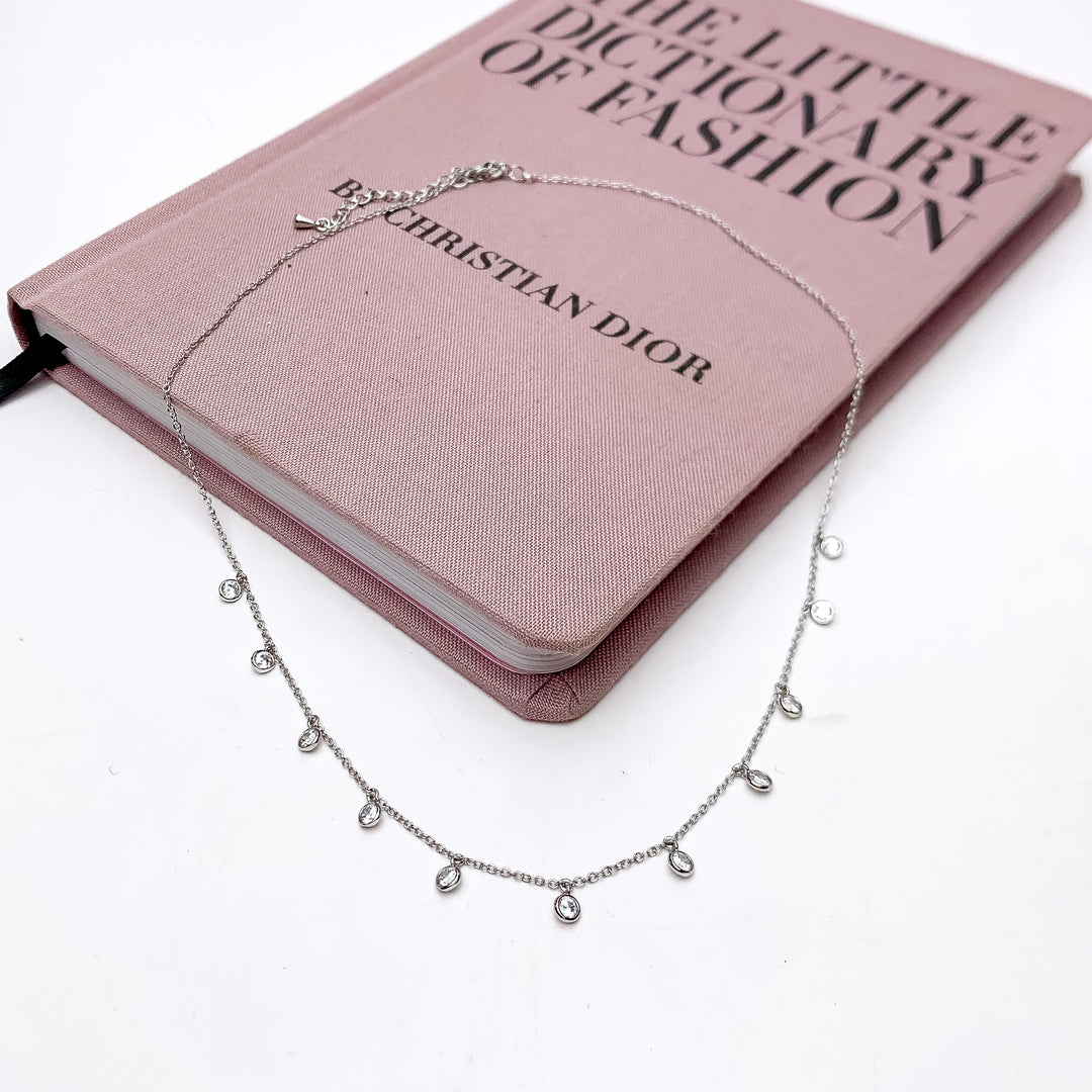 Silver Tone Chain Necklace With Clear Crystal Charms