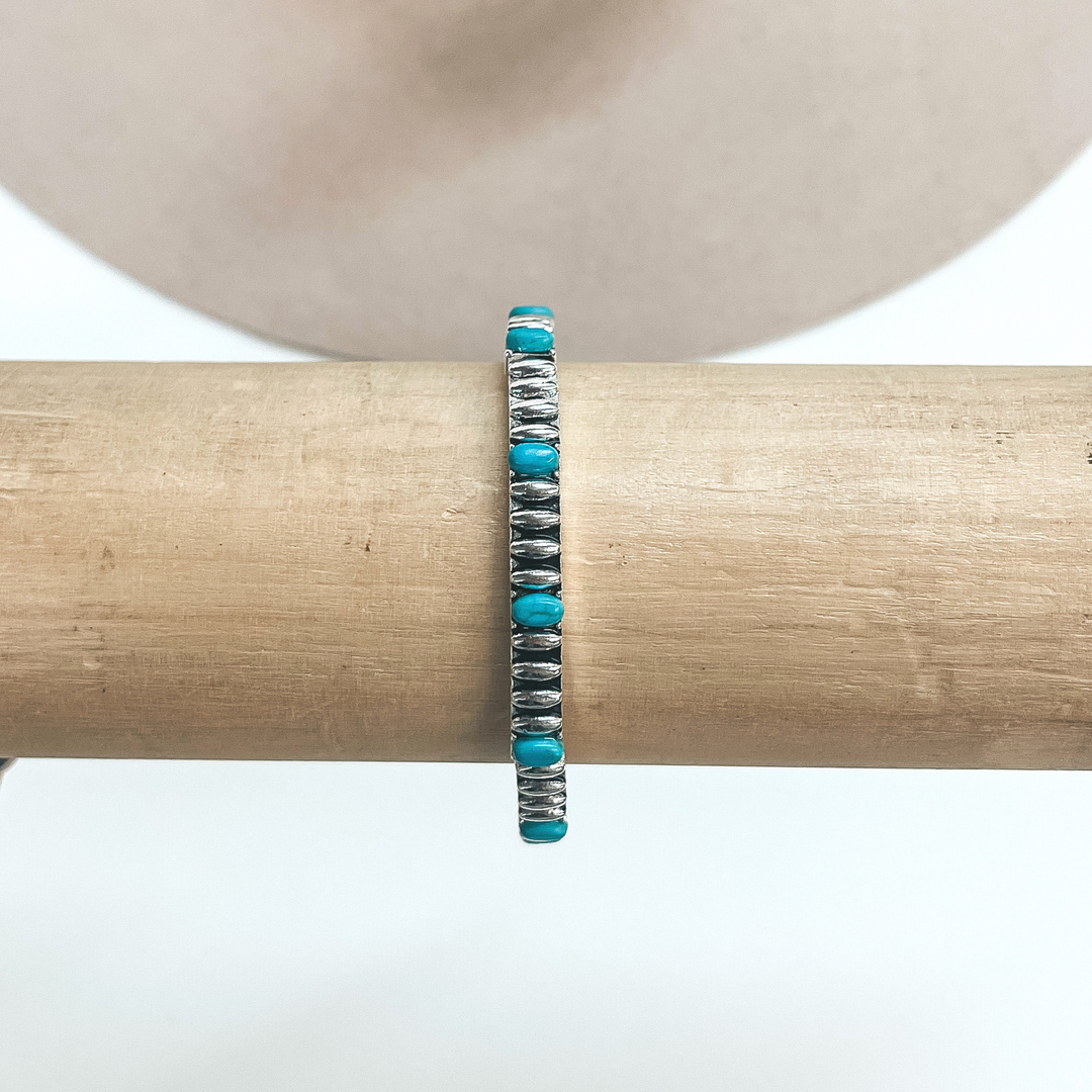 Silver Tone Oval Engraved Bracelet with Oval Faux Turquoise Stones