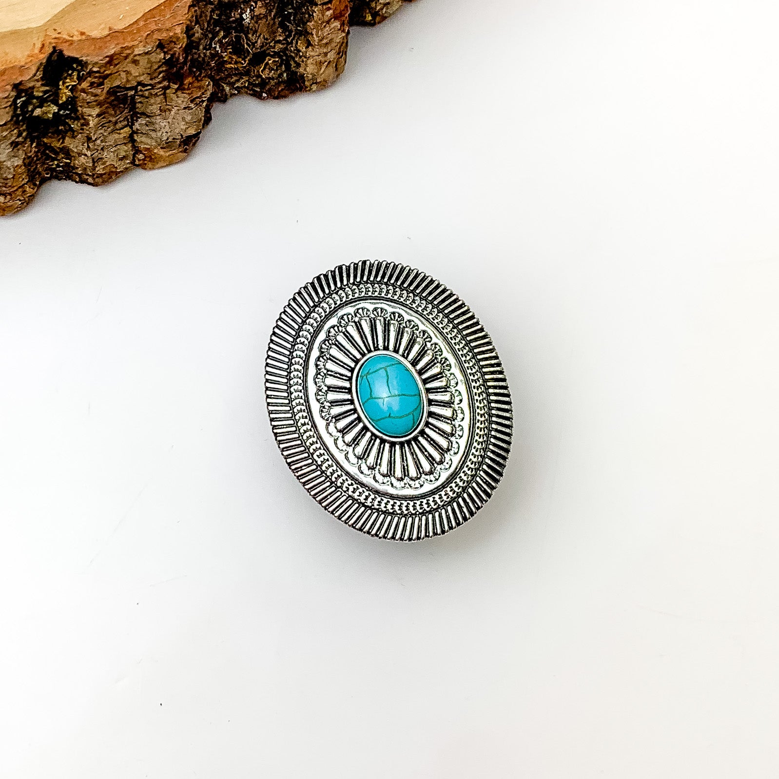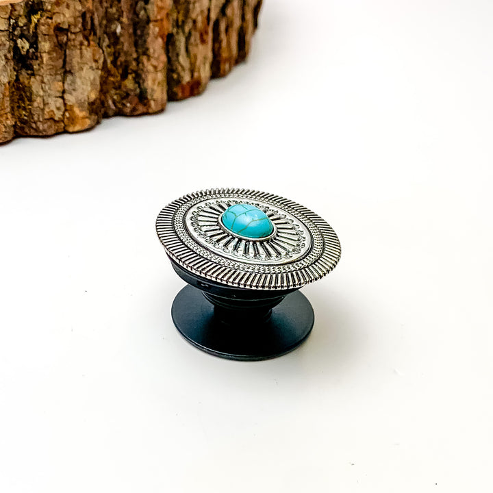 Silver Tone Oval With Turquoise Stone Phone Grip