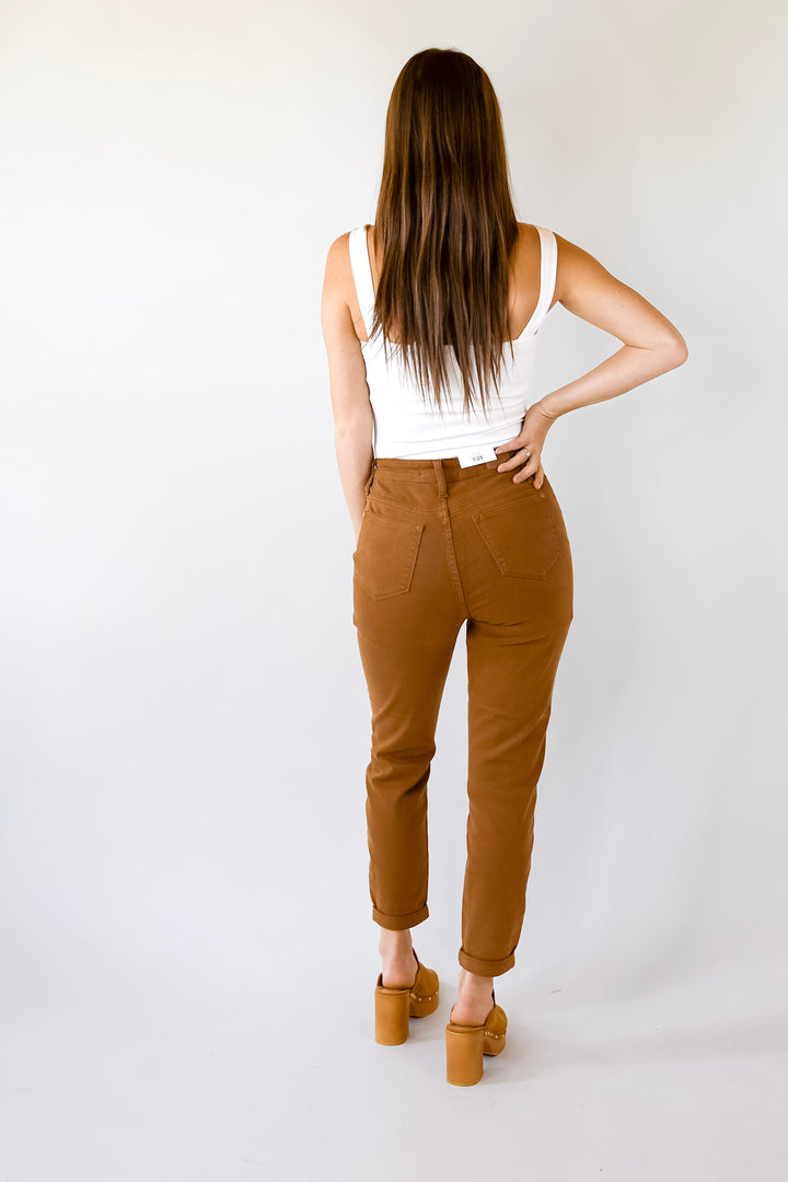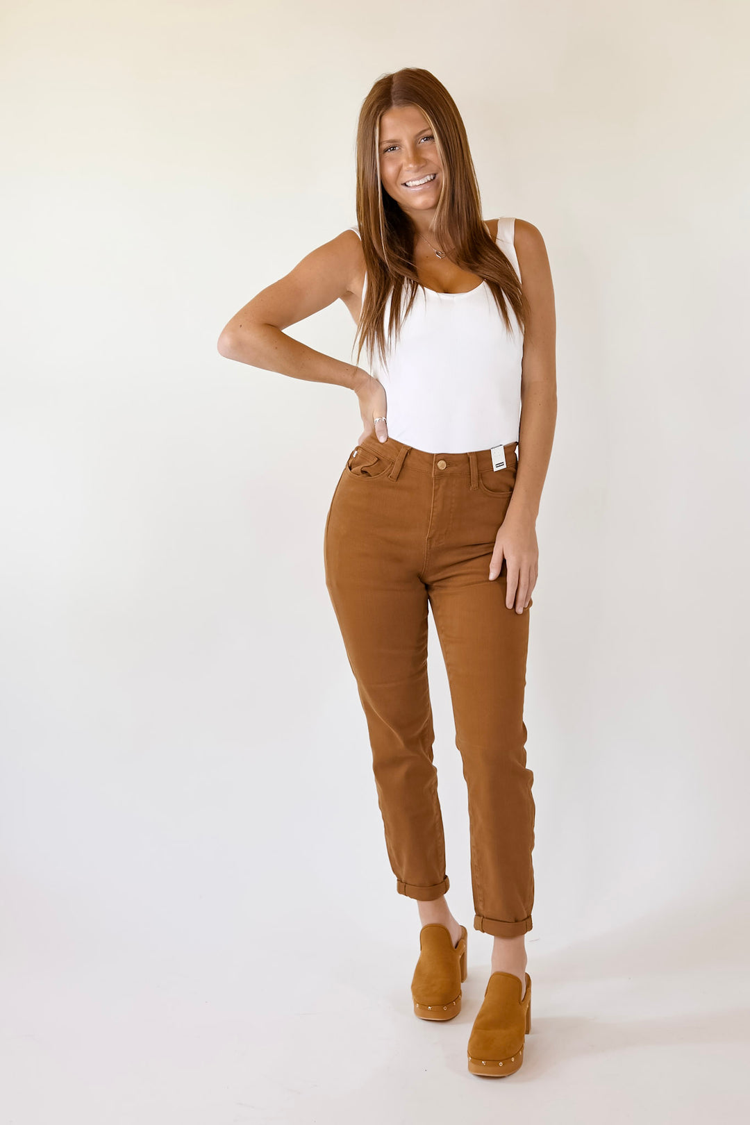 Last Chance Size 0 | Judy Blue | Celebrate Everyday Slim Fit Jeans with Cuffed Hem in Brown