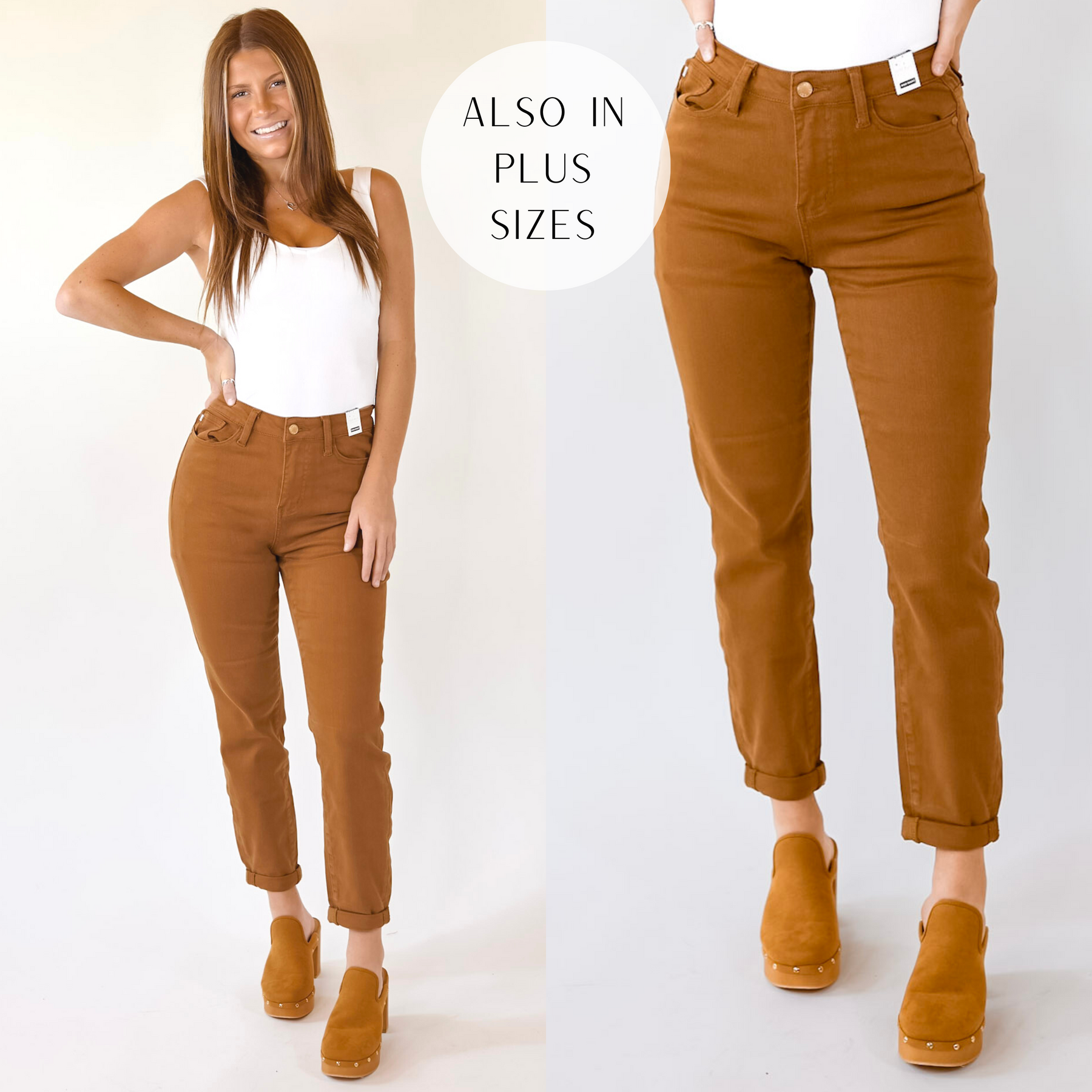 Celebrate everyday in these slim-fit Judy Blue jeans! With their cuffed hem and light brown color, these jeans will be the perfect choice for any casual occasion. Let your style shine while you enjoy low-key days!
