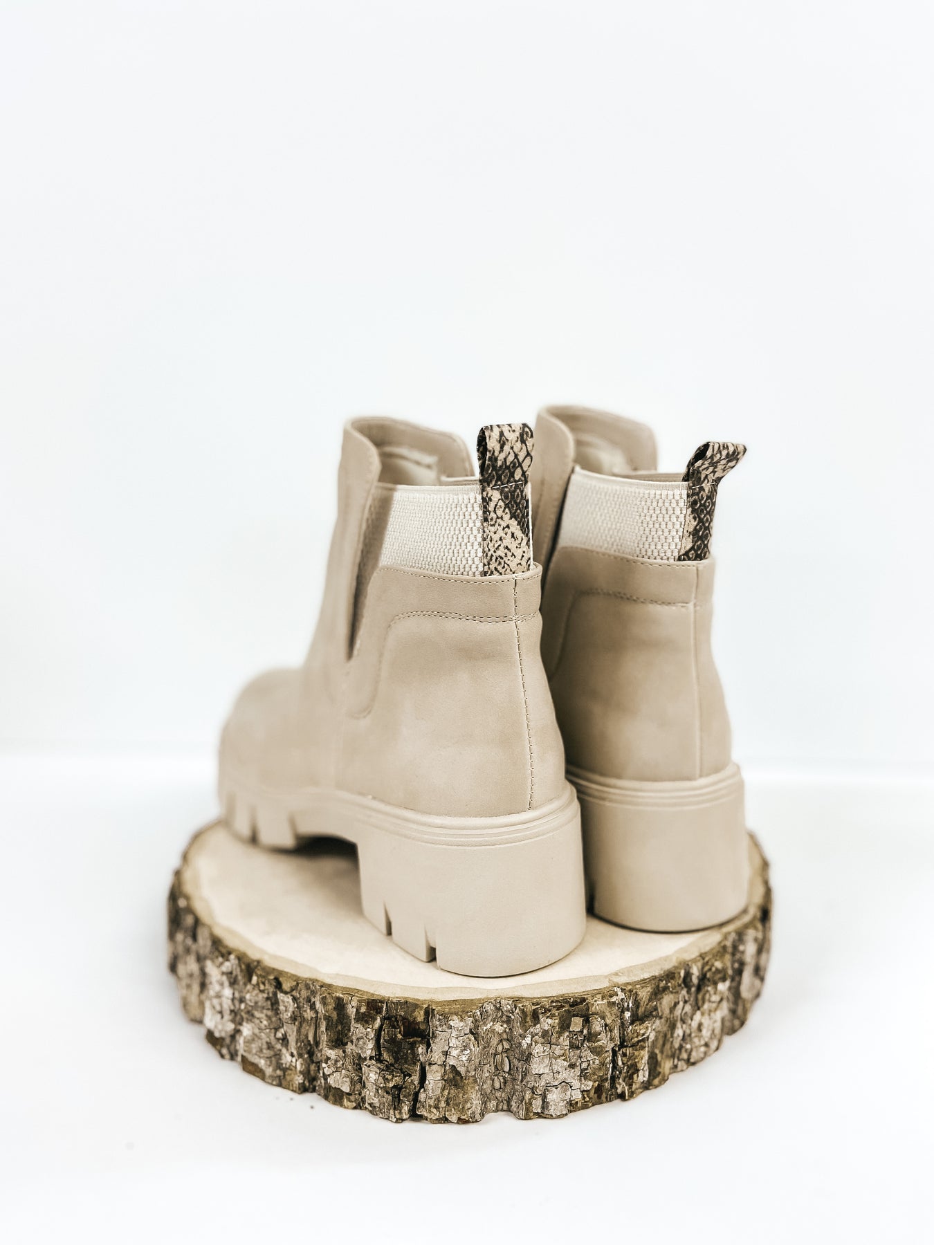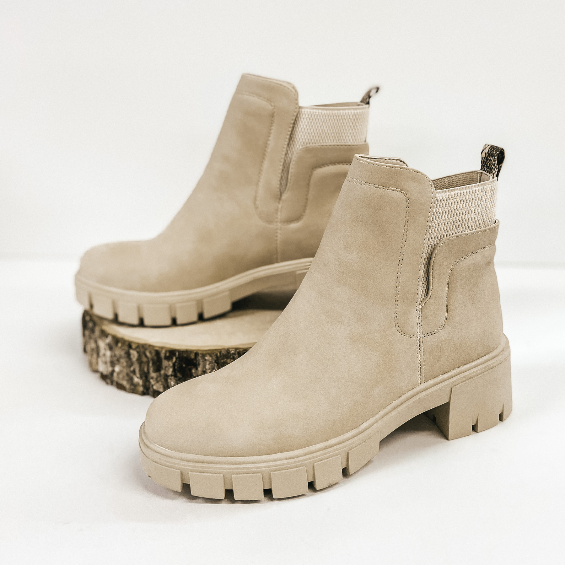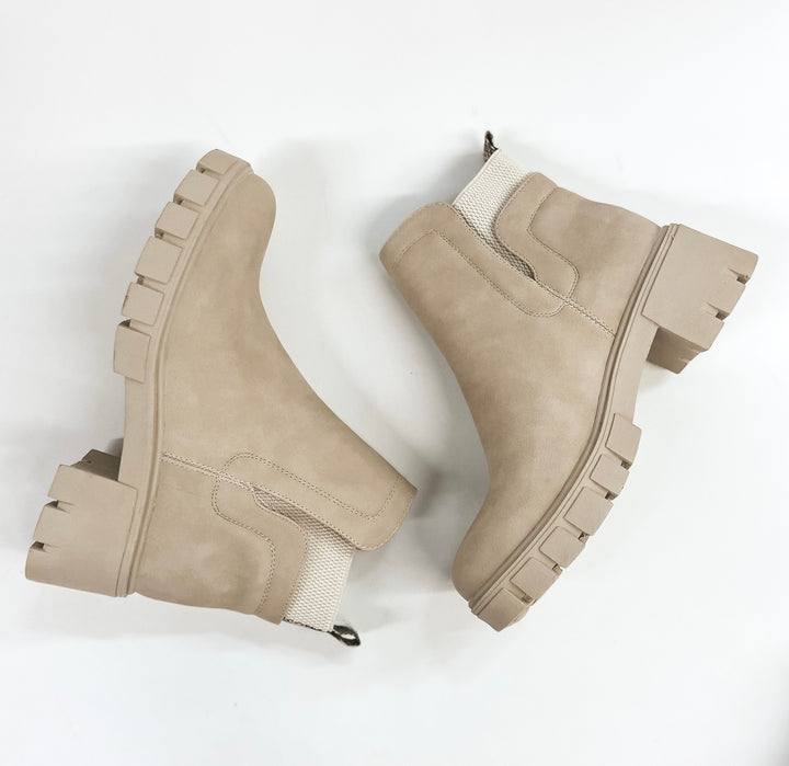 Season Premiere Slip On Chunky Heel Booties in Stone