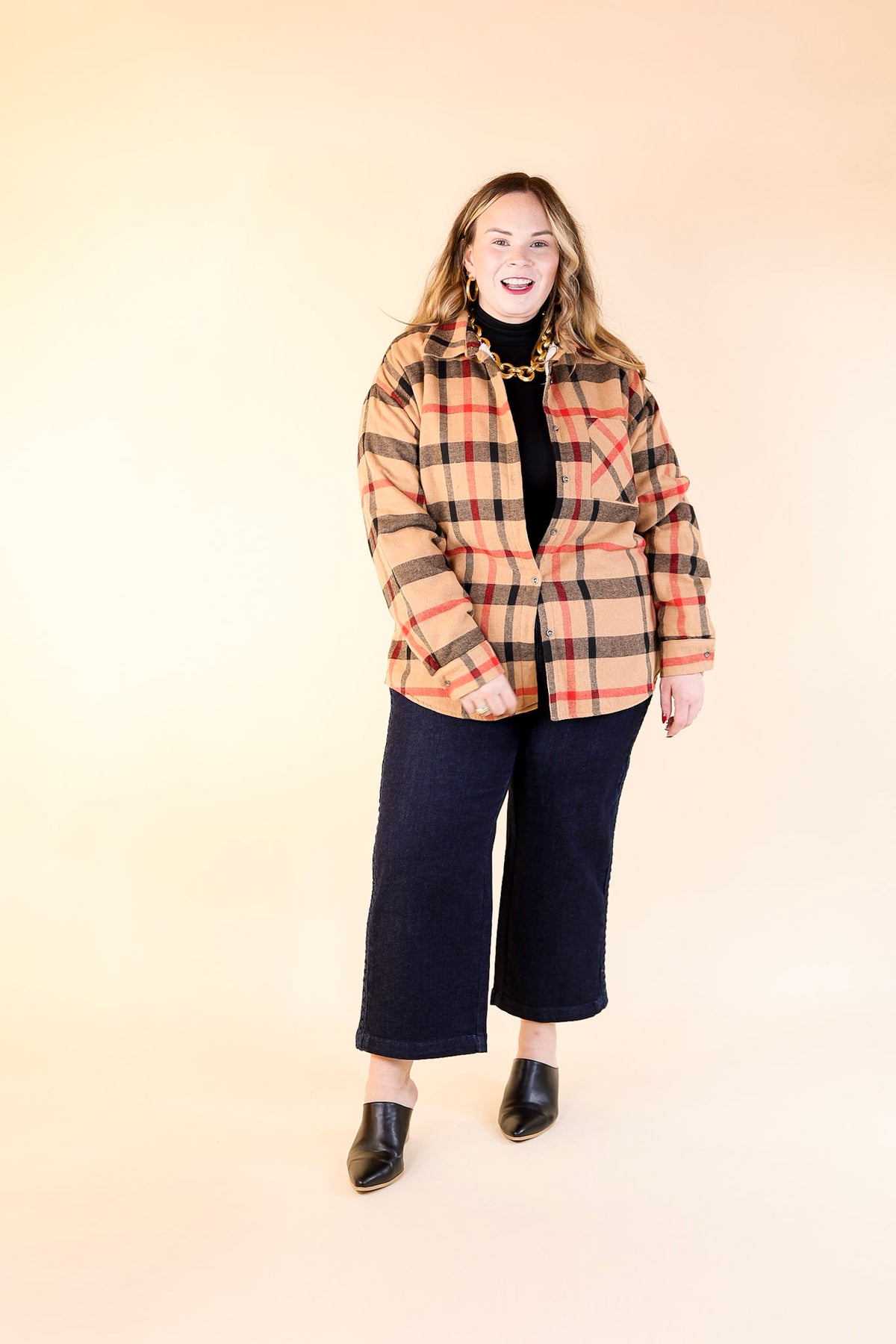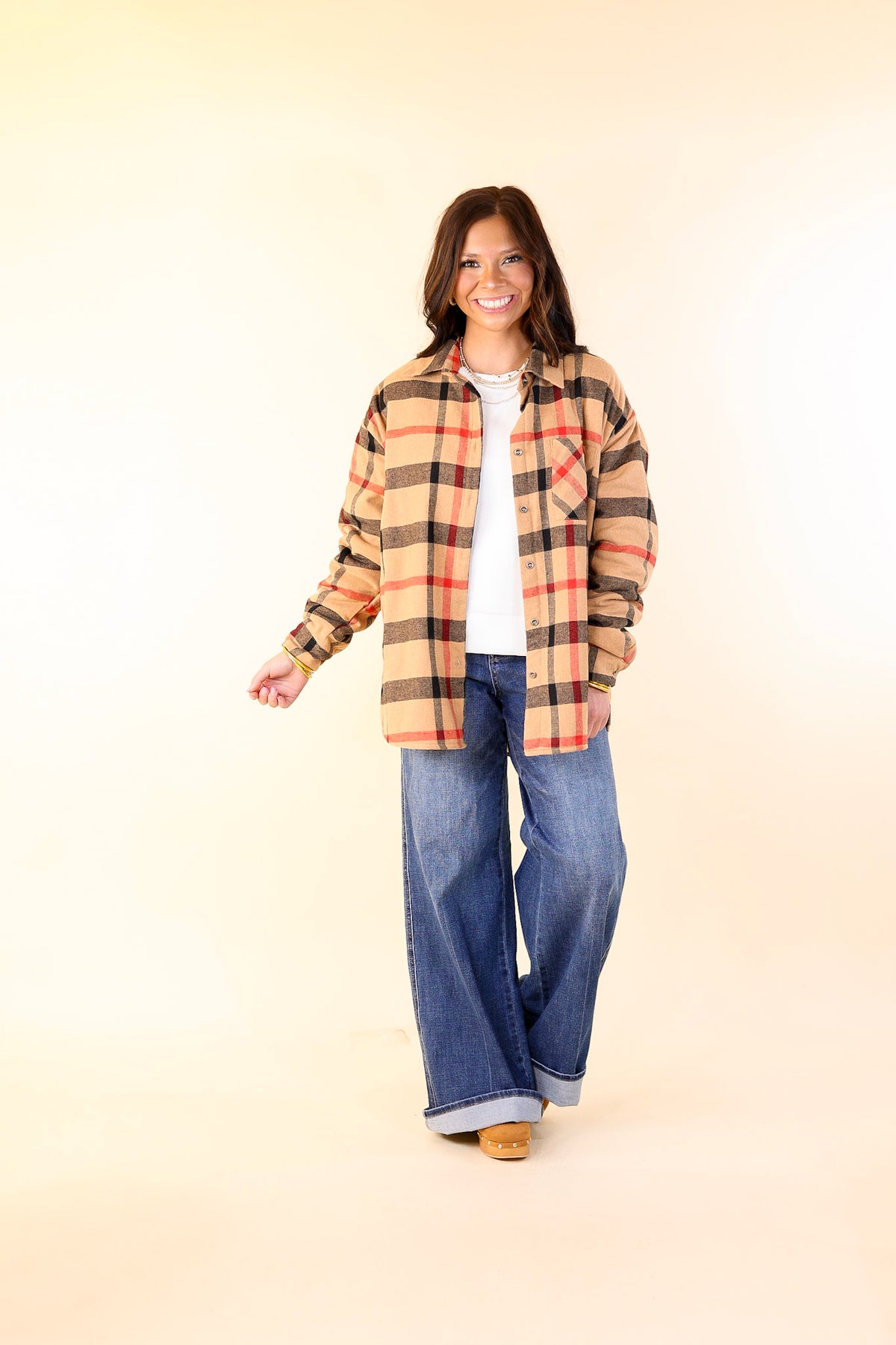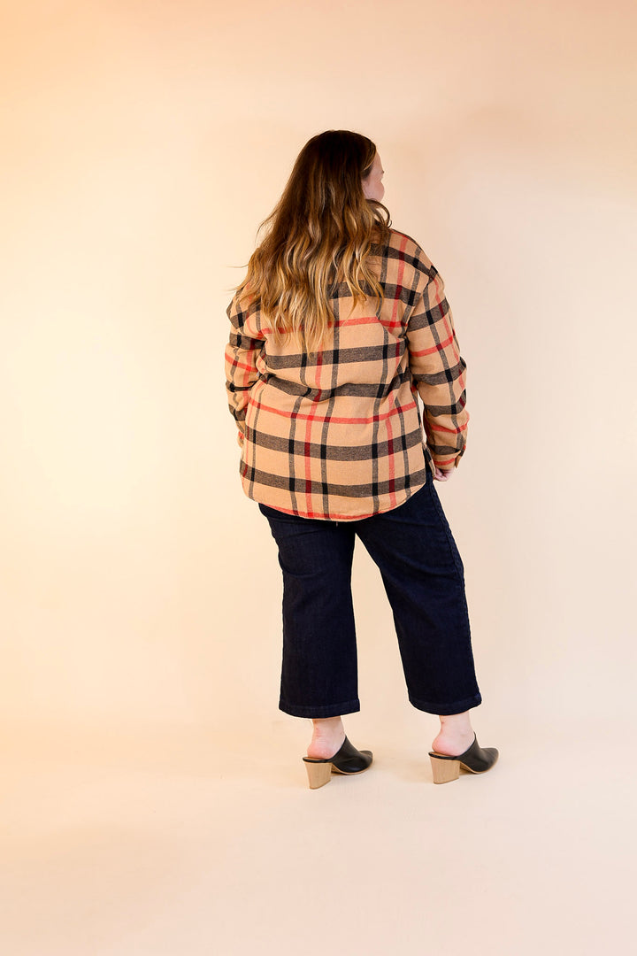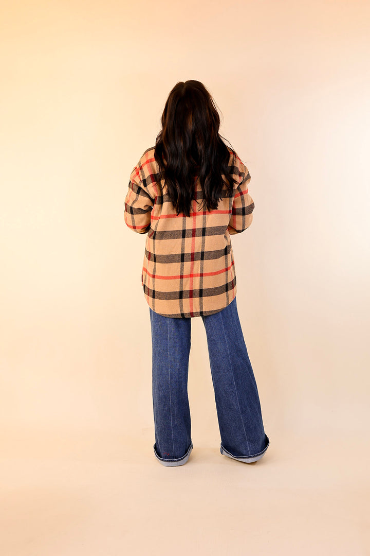 Soft and Dreamy Fur Lined Plaid Flannel Shacket in Tan