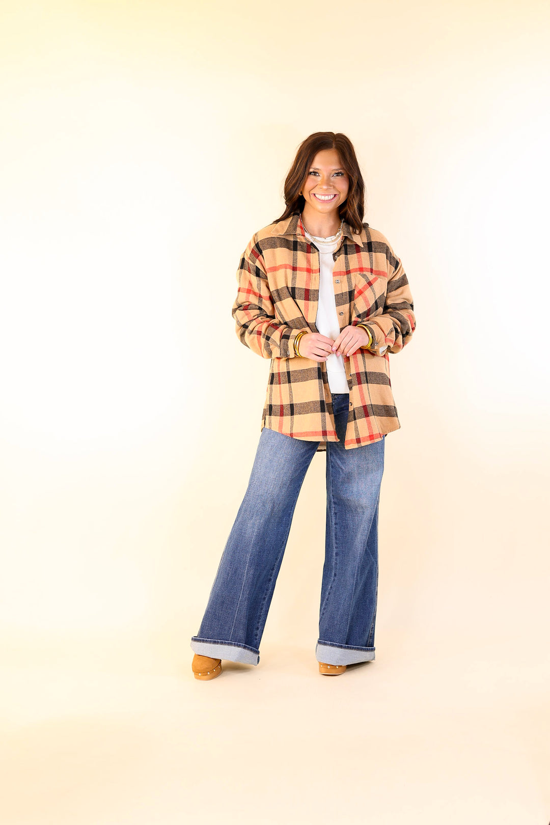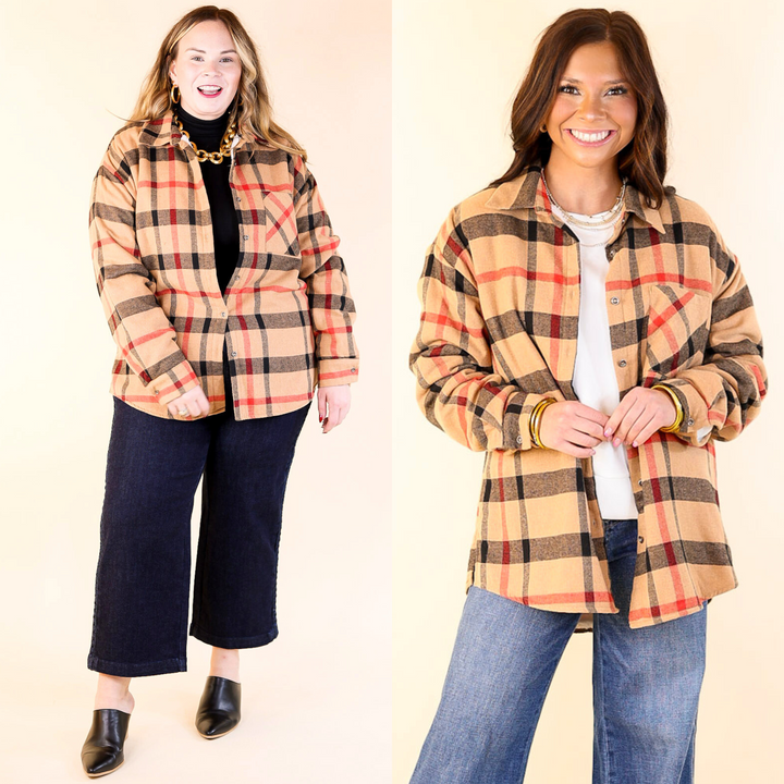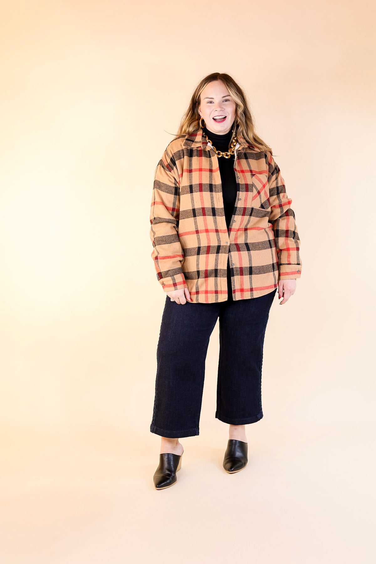 Soft and Dreamy Fur Lined Plaid Flannel Shacket in Tan