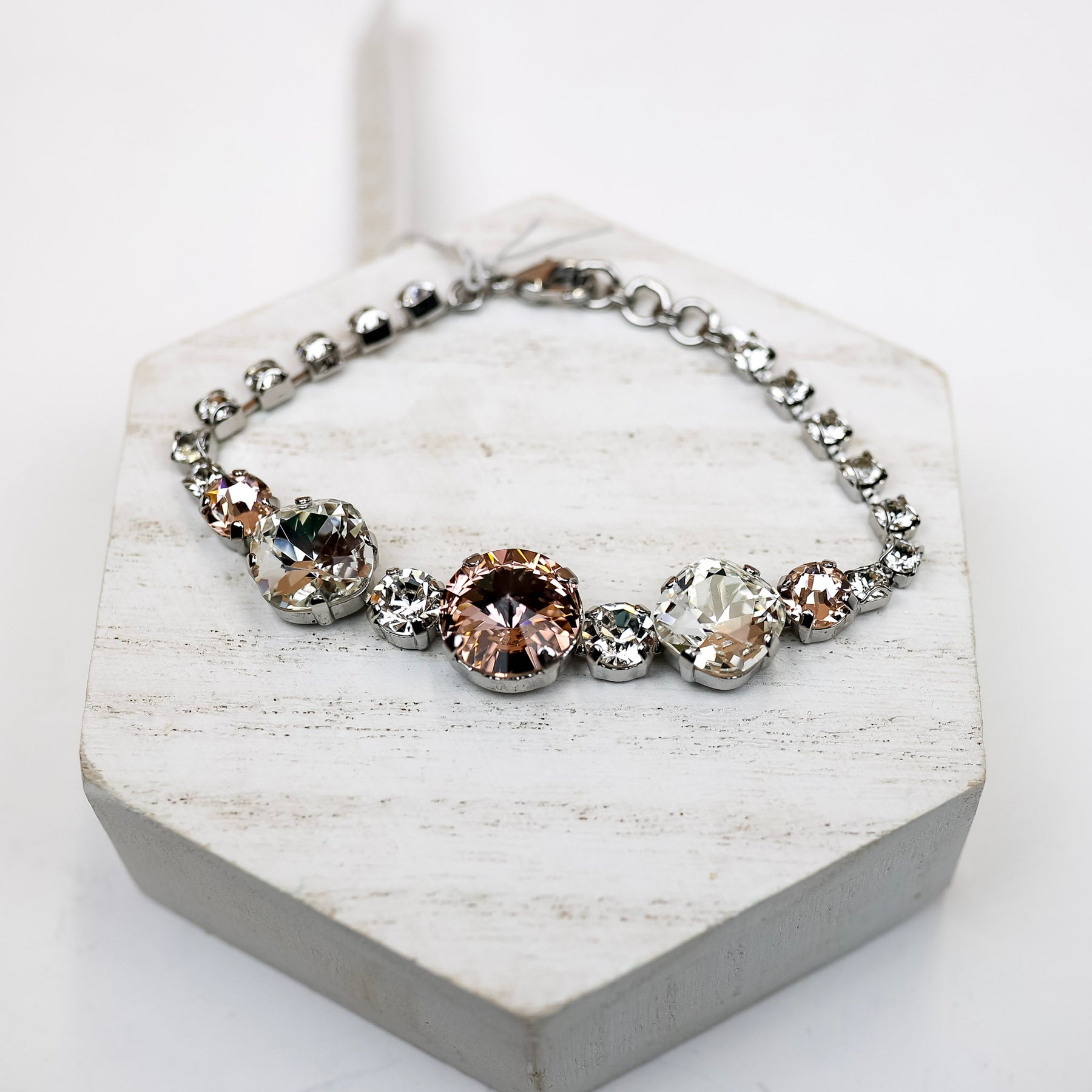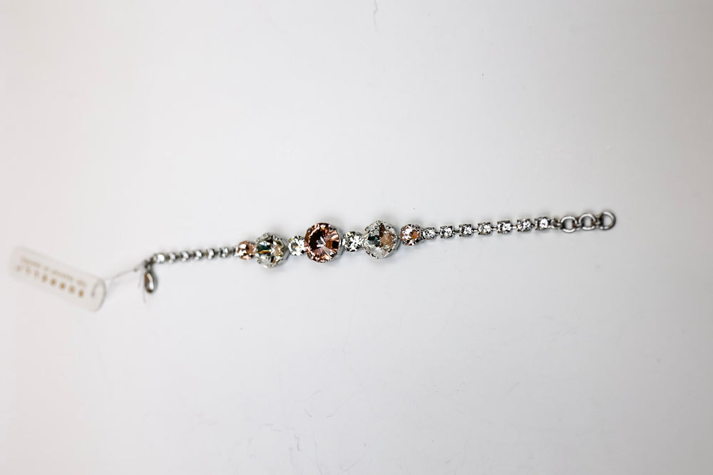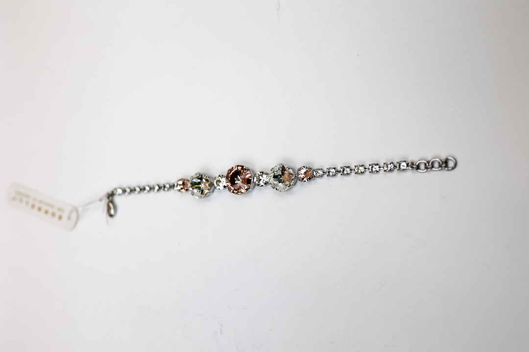 The Half Circle Tennis Bracelet adds the perfect amount of sparkle to every outfit. A crystal embellished chain connects varying sizes and colors of crystals with a lobster clasp closure. From Sorrelli's Snow Bunny collection in our Palladium finish.This is hand crafted and elegantly designed to make each Sorrelli piece special.