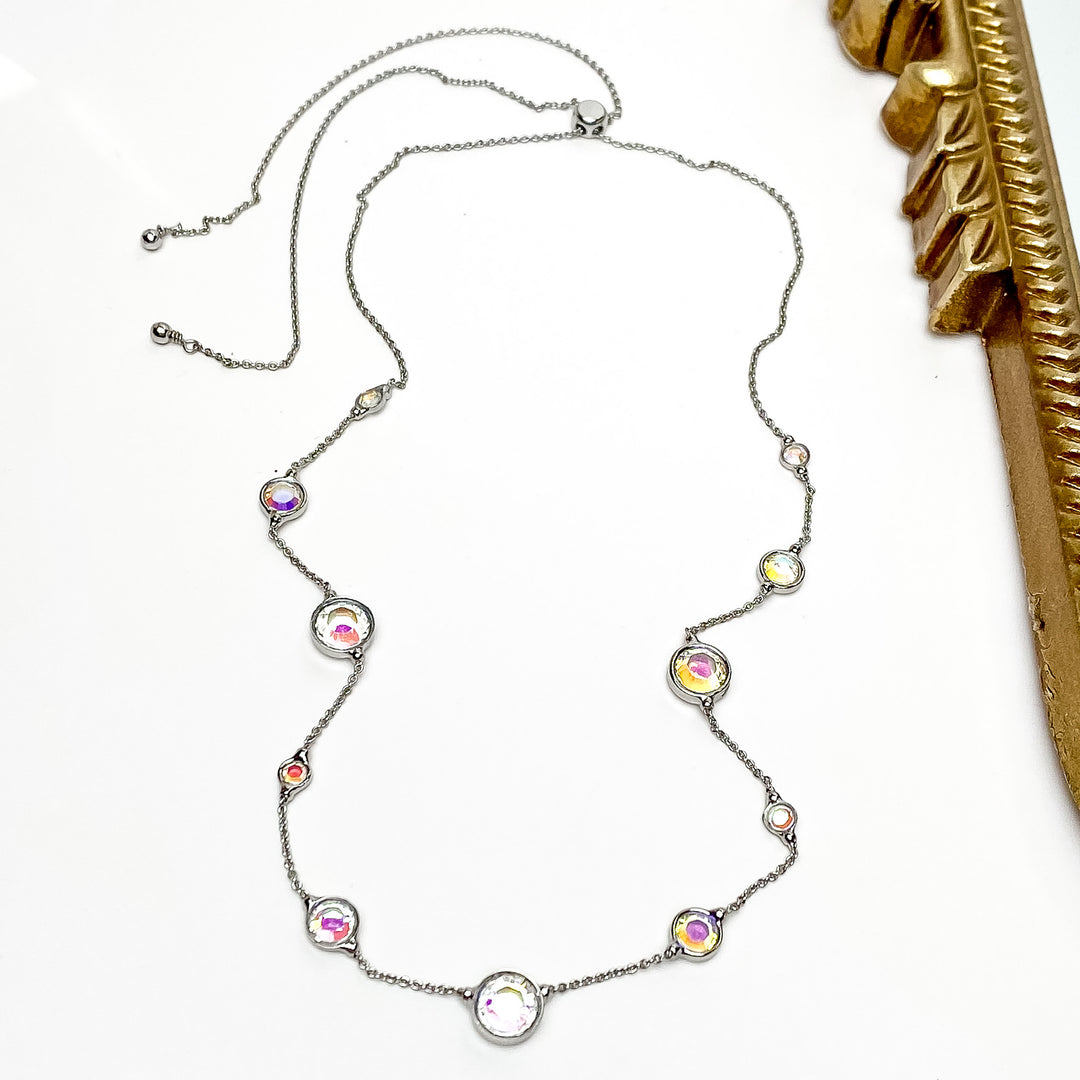 Small, medium and large crystal gems get equal time and attention in this classic slider necklace you're sure to reach for again and again. From Sorrelli's Aurora Borealis collection in our Palladium Silver-tone finish.