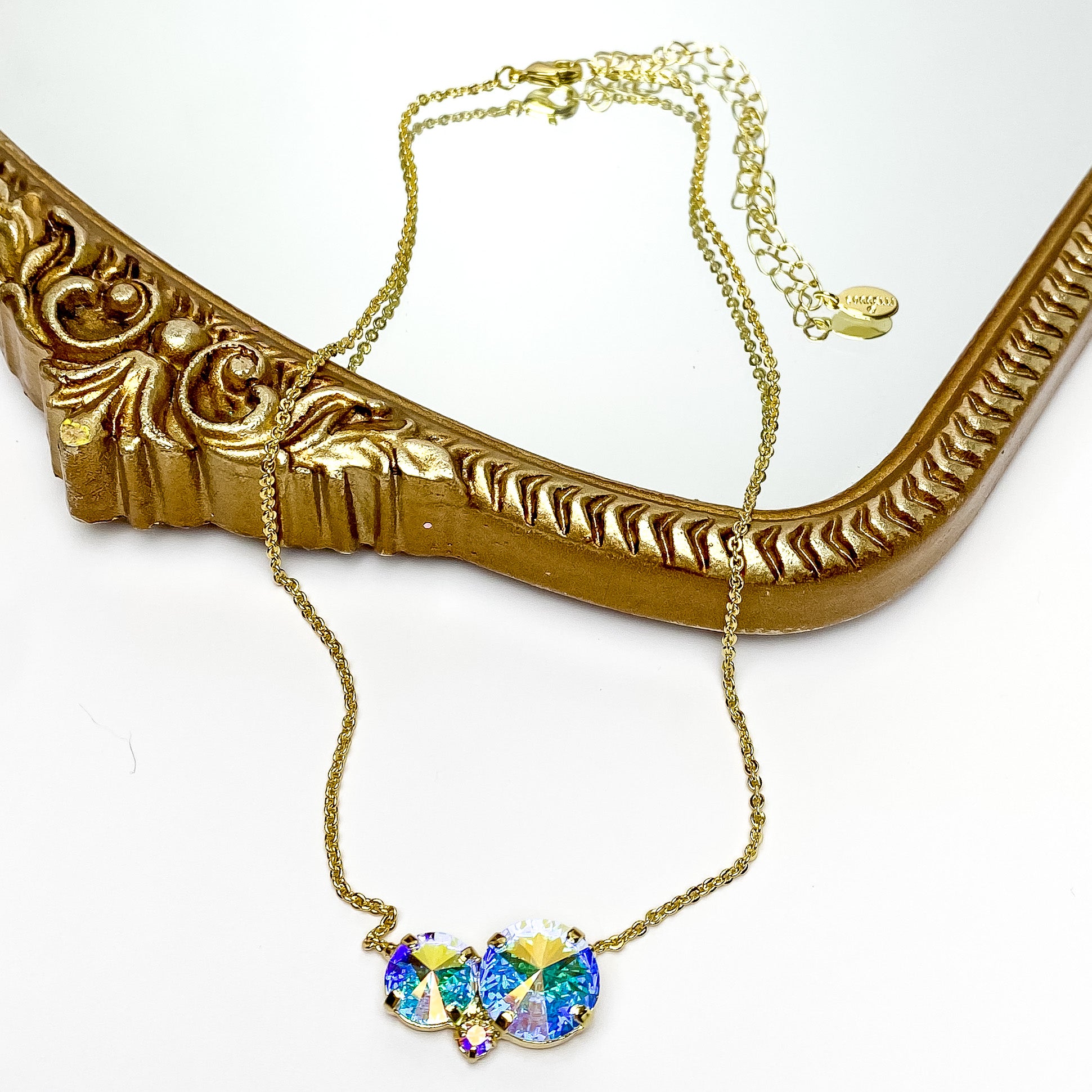 Sorrelli | Nadine Crystal Pendant Necklace in Bright Gold Tone and Aurora Borealis