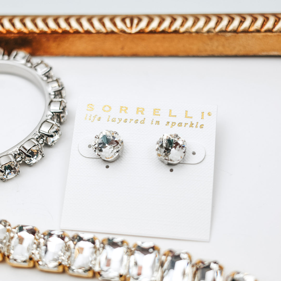 Sorrelli | Round Stud Earrings in Palladium Silver Tone and Crystal