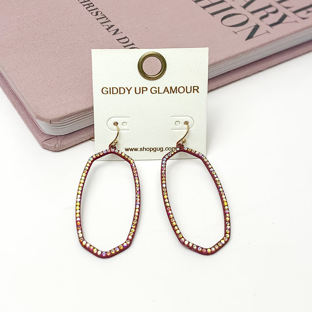 Sparkle Girl Open Oval Earrings in Maroon