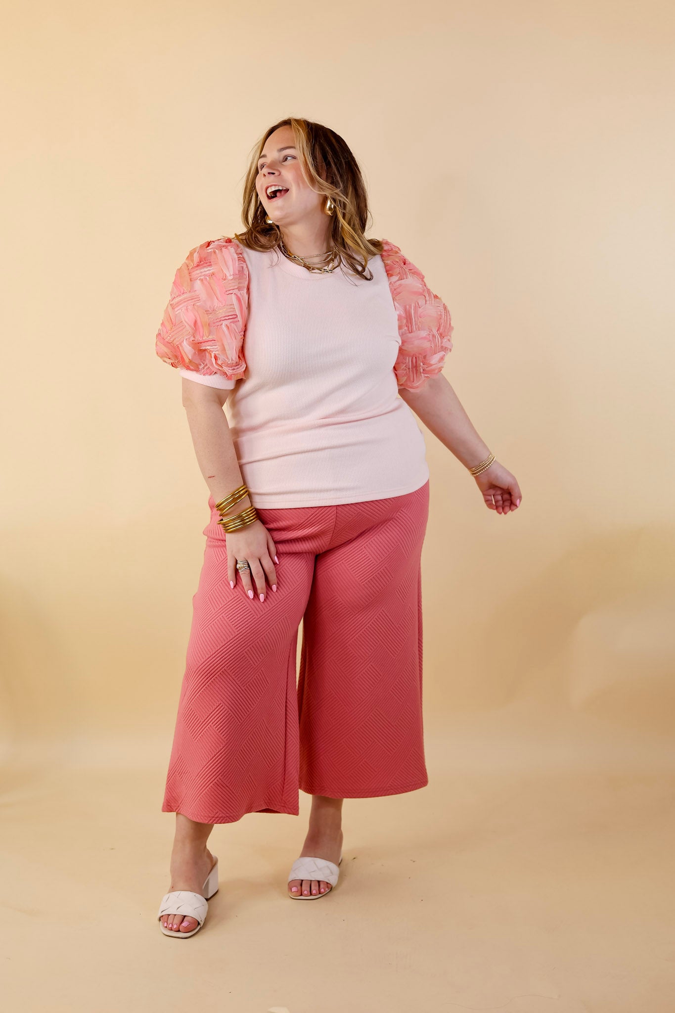 This Spring Girls Geometric Balloon Sleeve Top is the perfect addition to your wardrobe. Featuring a pale pink crew neckline and short balloon sleeves. Perfect for everyday wear. Pair it with Judy Blue Jeans and sandals for a Spring season look!