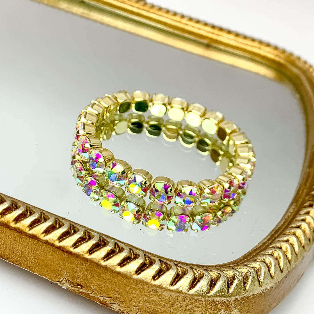 Sorrelli | Sienna Crystal Stretch Bracelet in Bright Gold Tone and Aurora Borealis Crystals