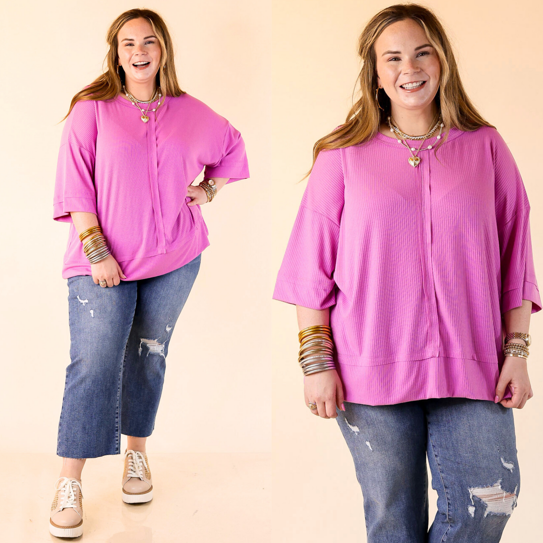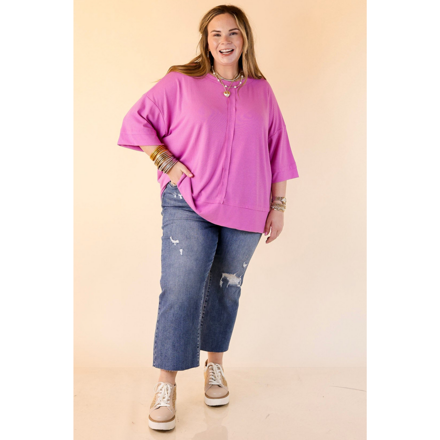 A little detail goes a long way. This effortlessly chic crew neck top features a relaxed fit, short sleeves, and seam detailing down the front for that just-right touch of interest. The extended hemline adds a flattering finish, making it the kind of basic that’s anything but. Dress it up, layer it, or keep it casual—this one’s made to move with you.