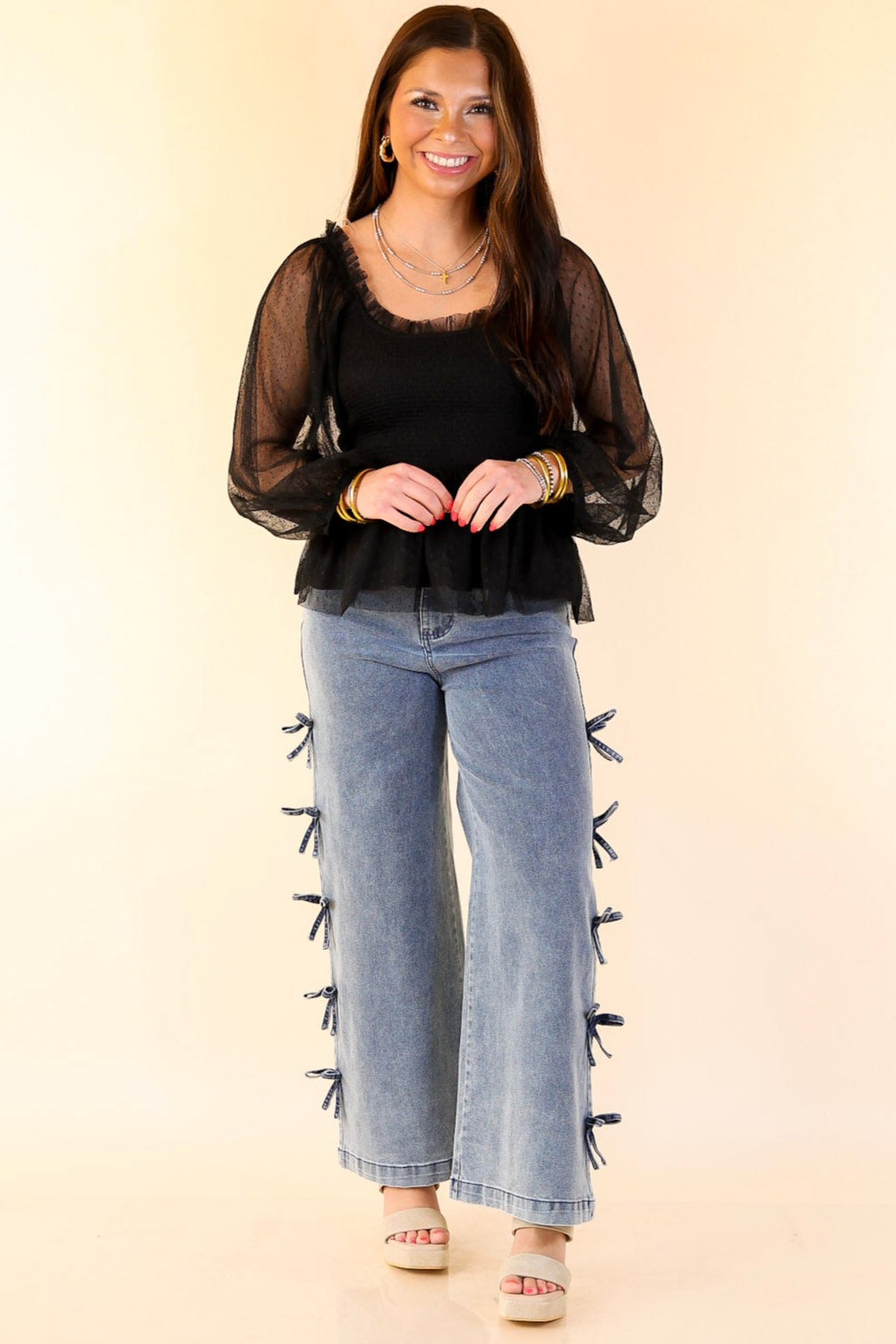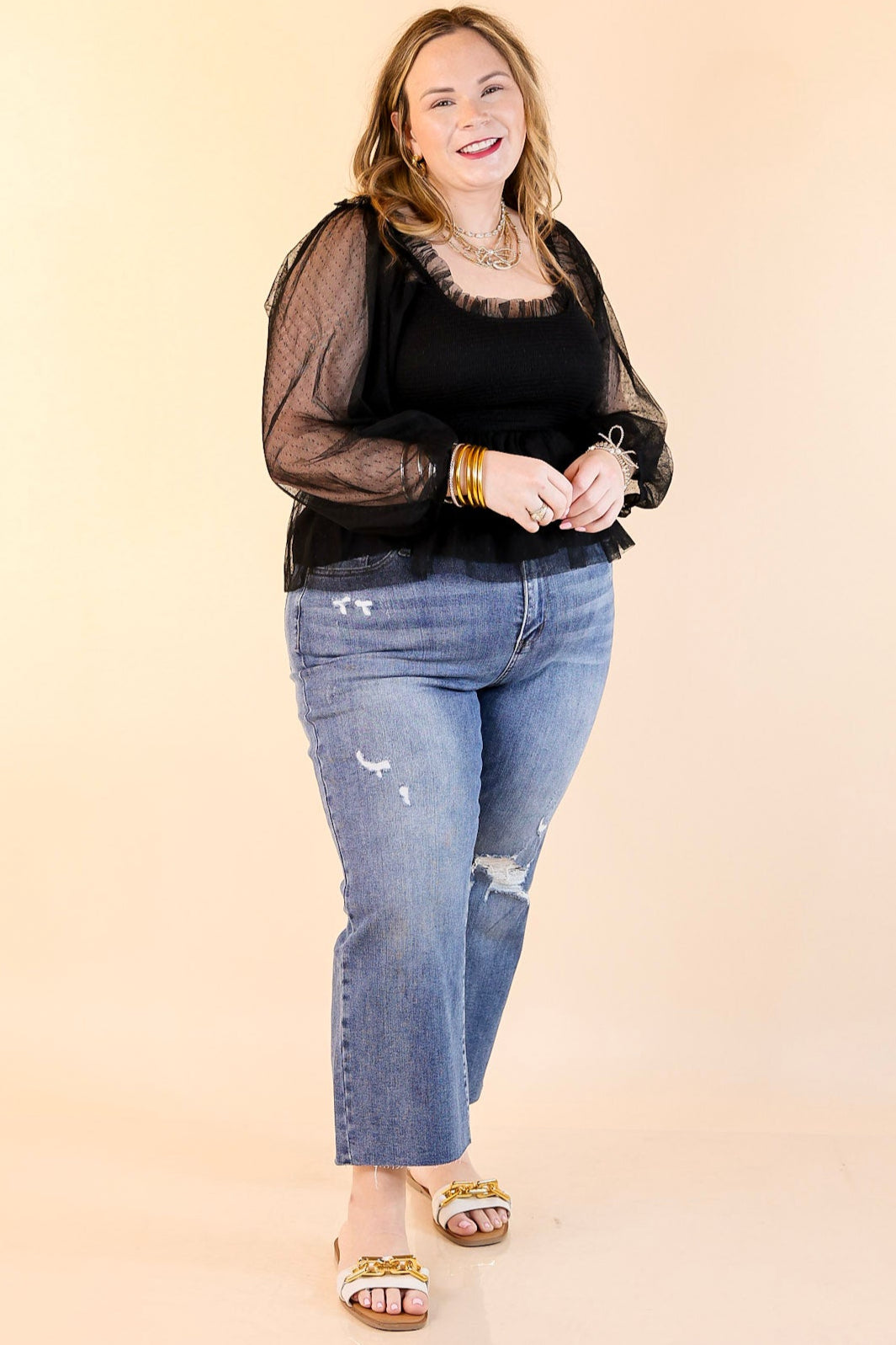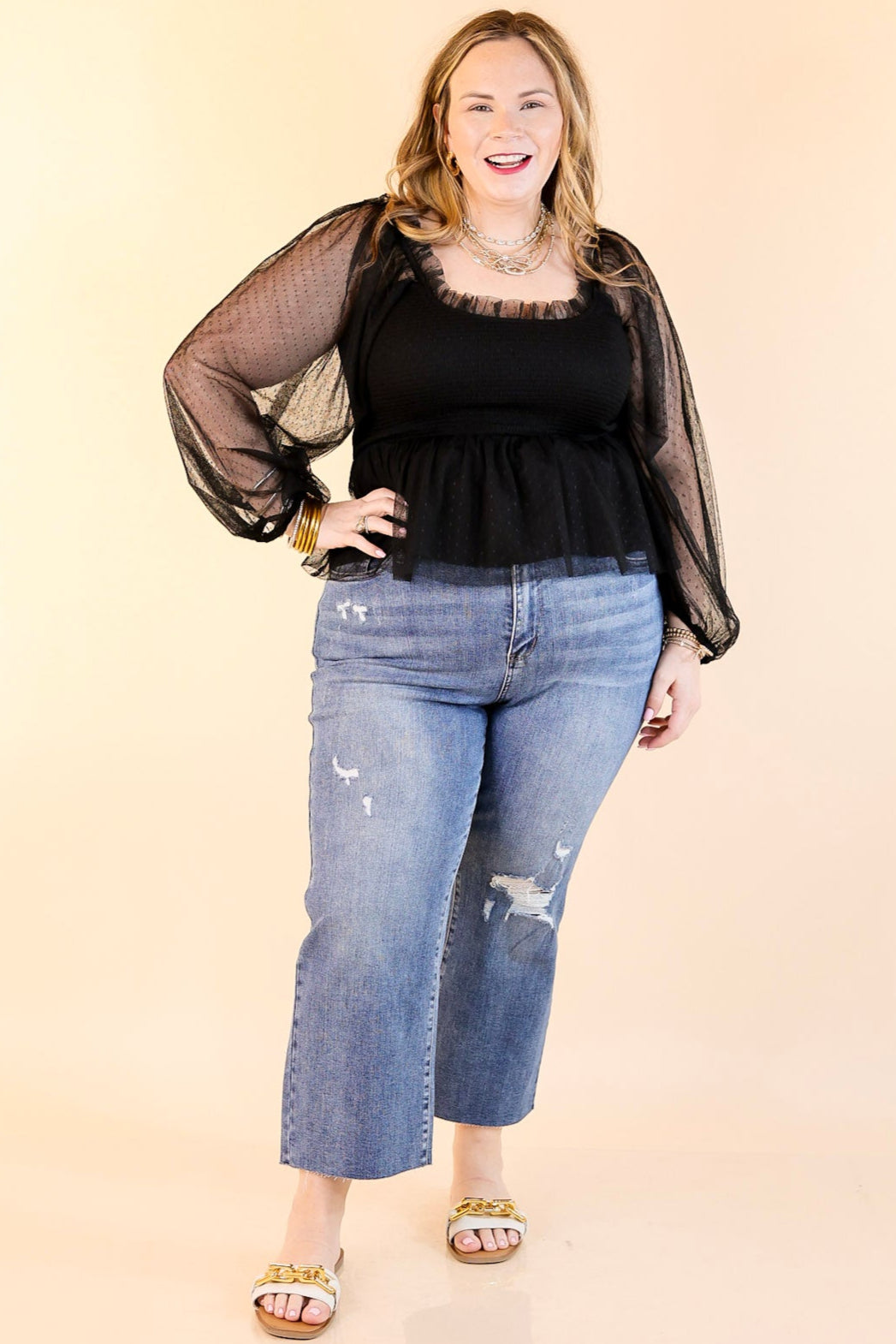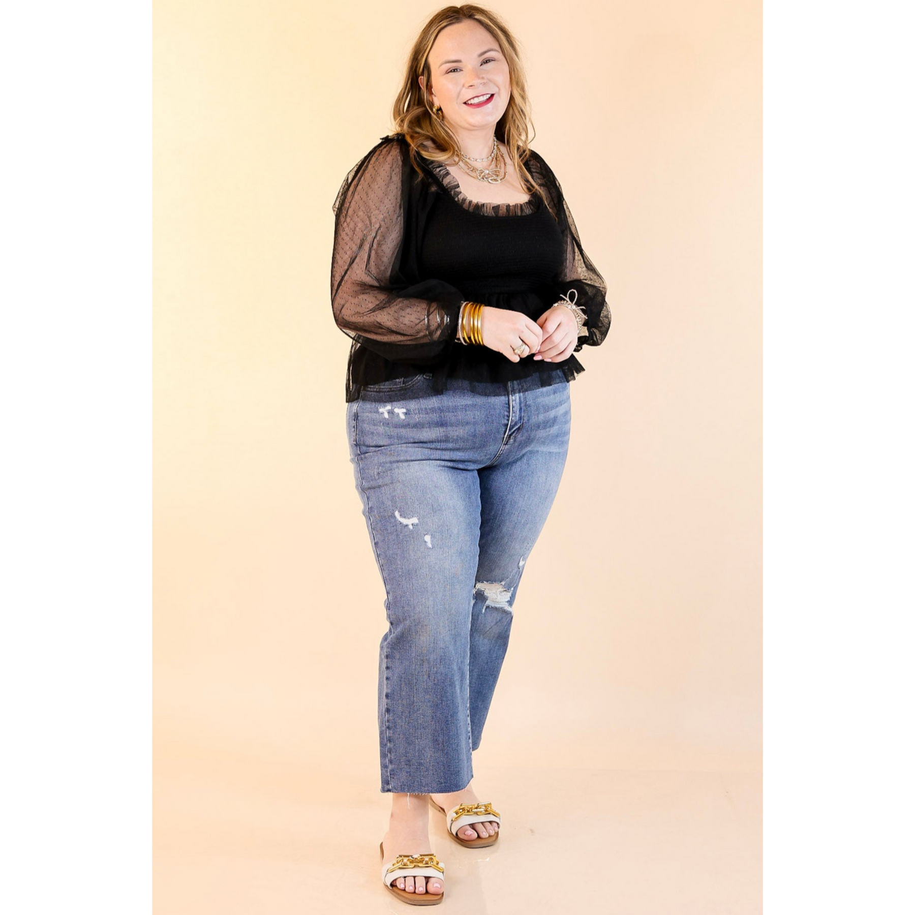 Meet your new go-to for date nights, girls’ dinners, and everything in between. The Subtle Statement Top is a black long sleeve blouse featuring a flattering smocked bodice, sheer balloon sleeves, and delicate ruffle details at the neckline and hem. The perfect mix of chic and feminine, this top pairs effortlessly with high-waisted jeans or a sleek skirt for an elevated look with just the right amount of drama.