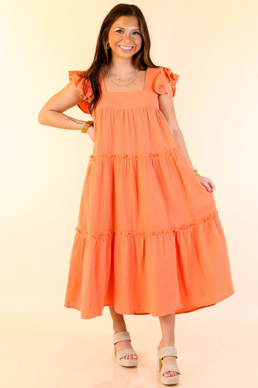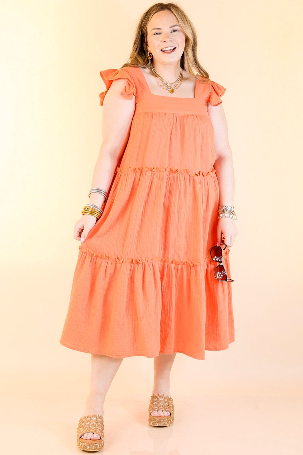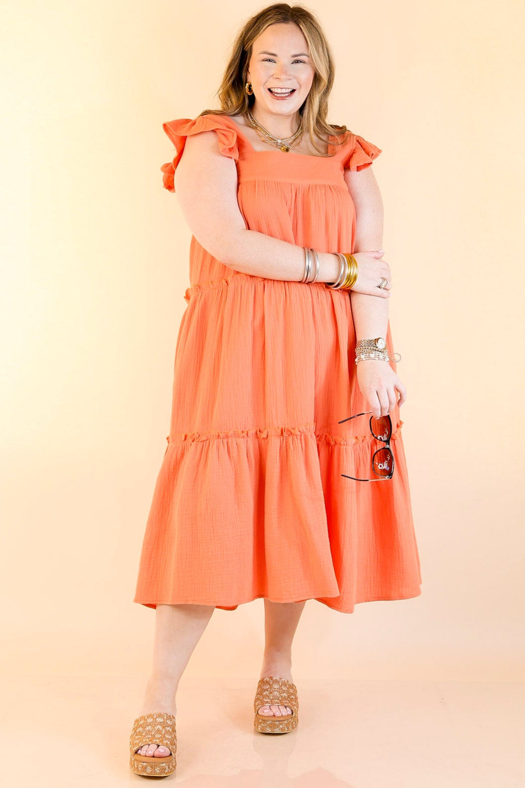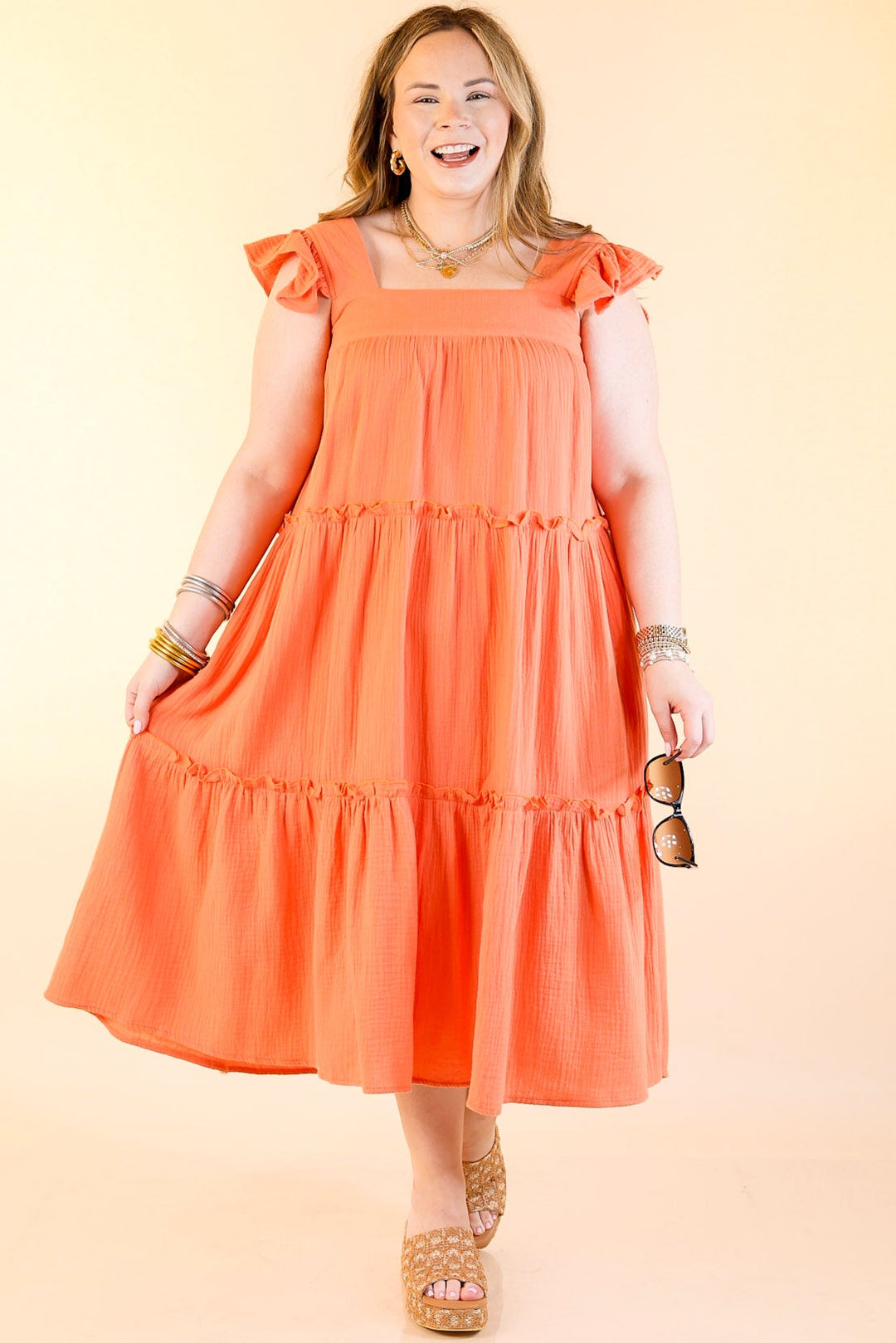 Last Chance Size Large | Sun-Sational Ruffle Tiered Tank Midi Dress in Orange