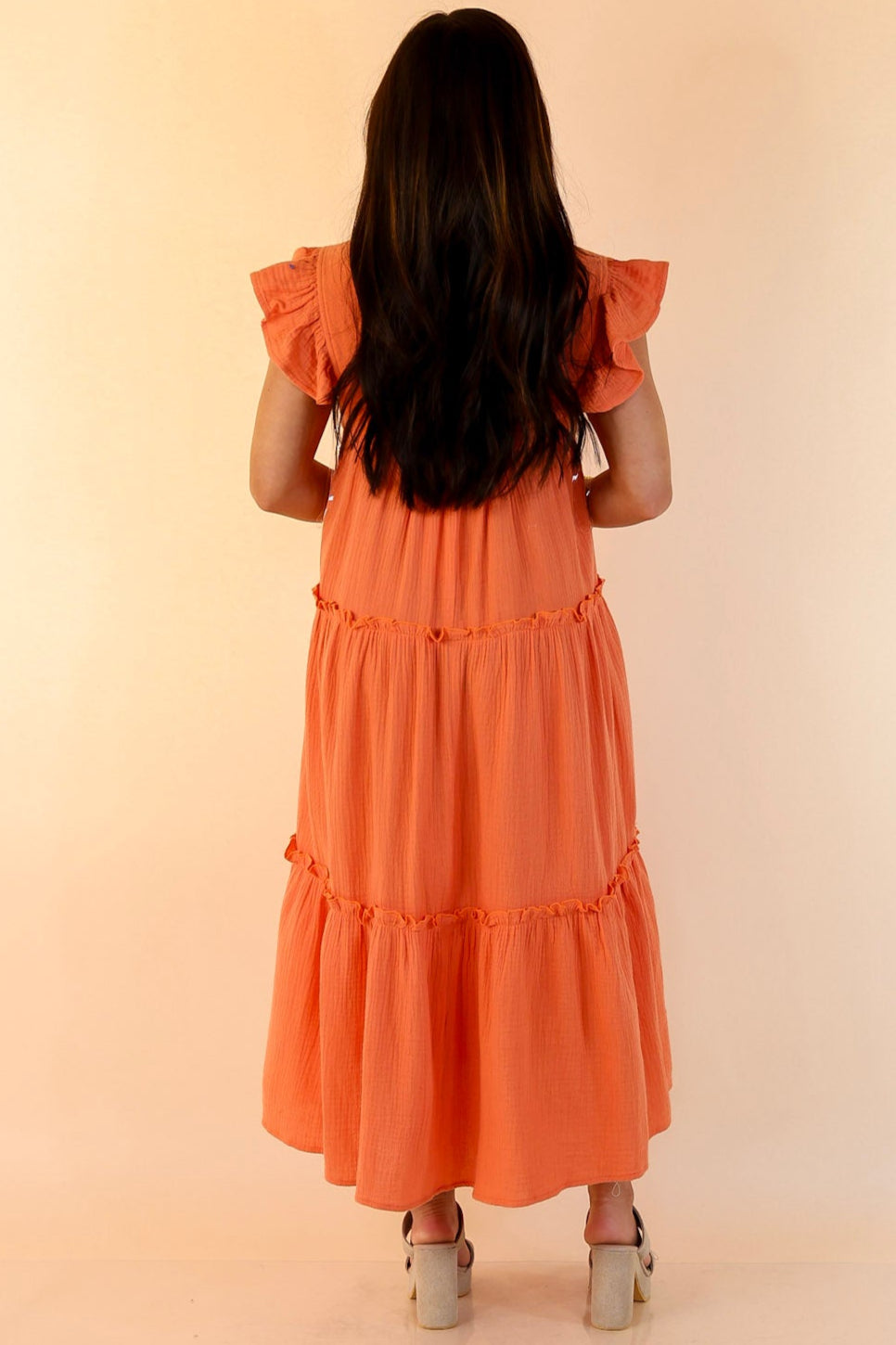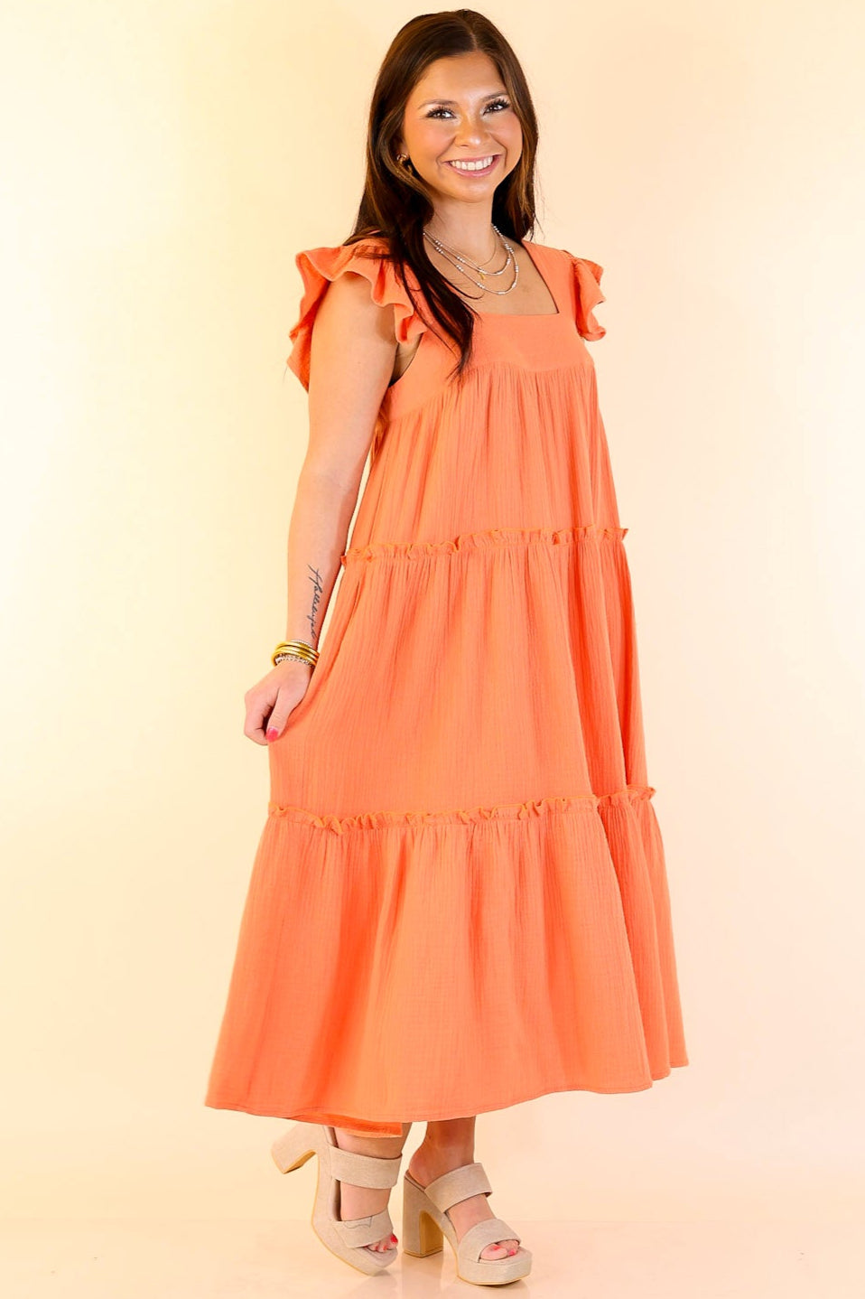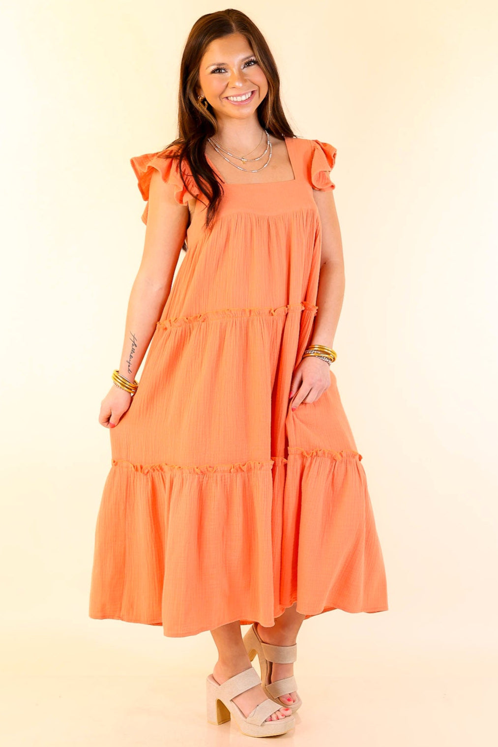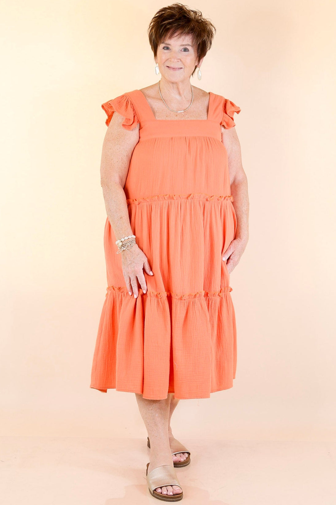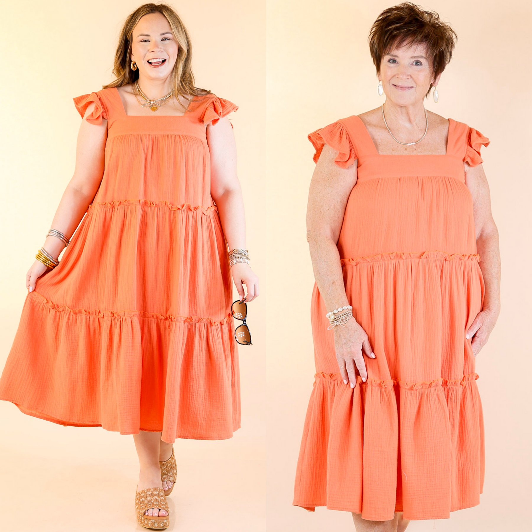 Last Chance Size Large | Sun-Sational Ruffle Tiered Tank Midi Dress in Orange