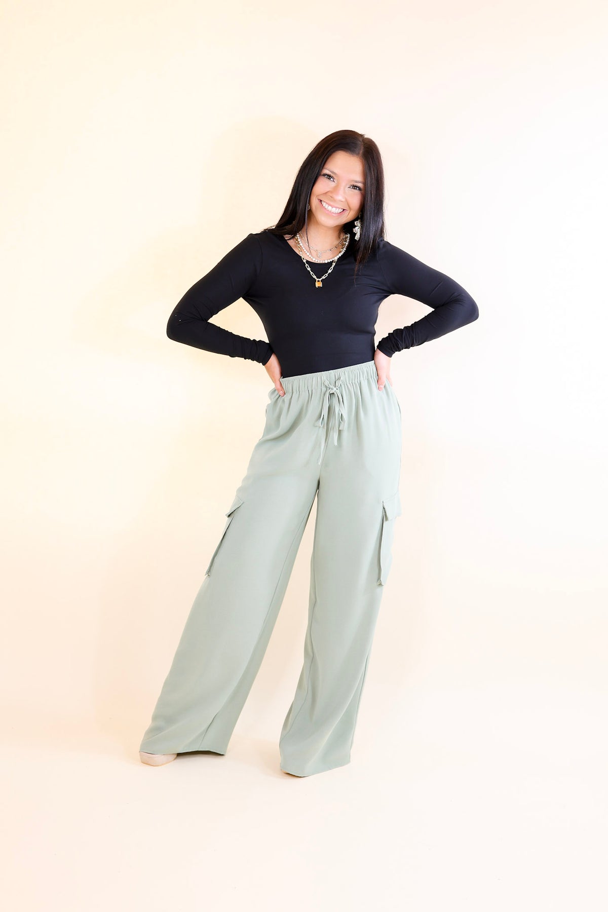 Sunday Stroll Wide Leg Cargo Pant in Sage Green