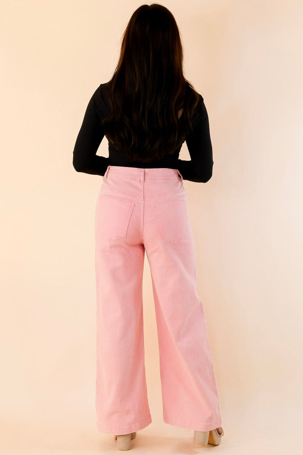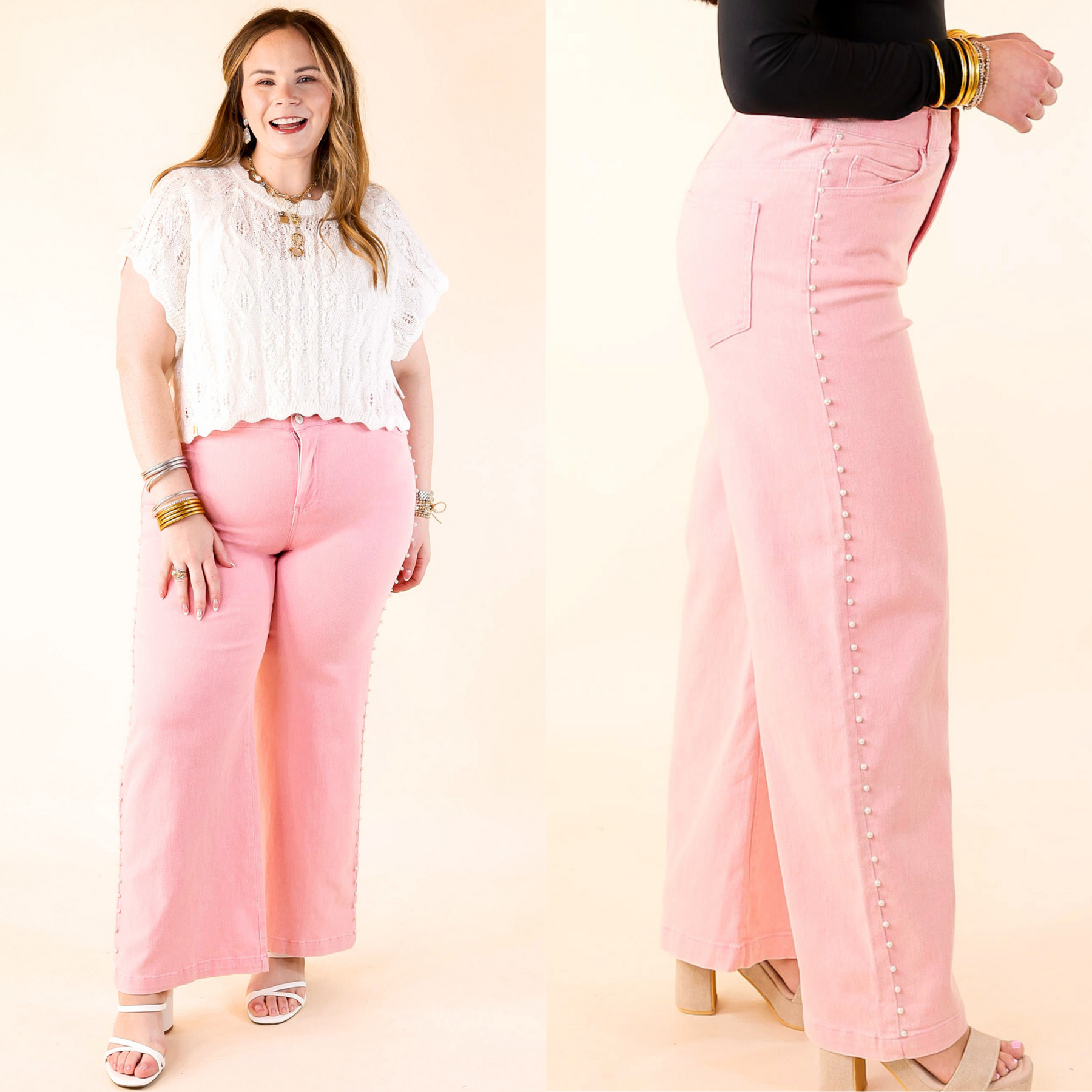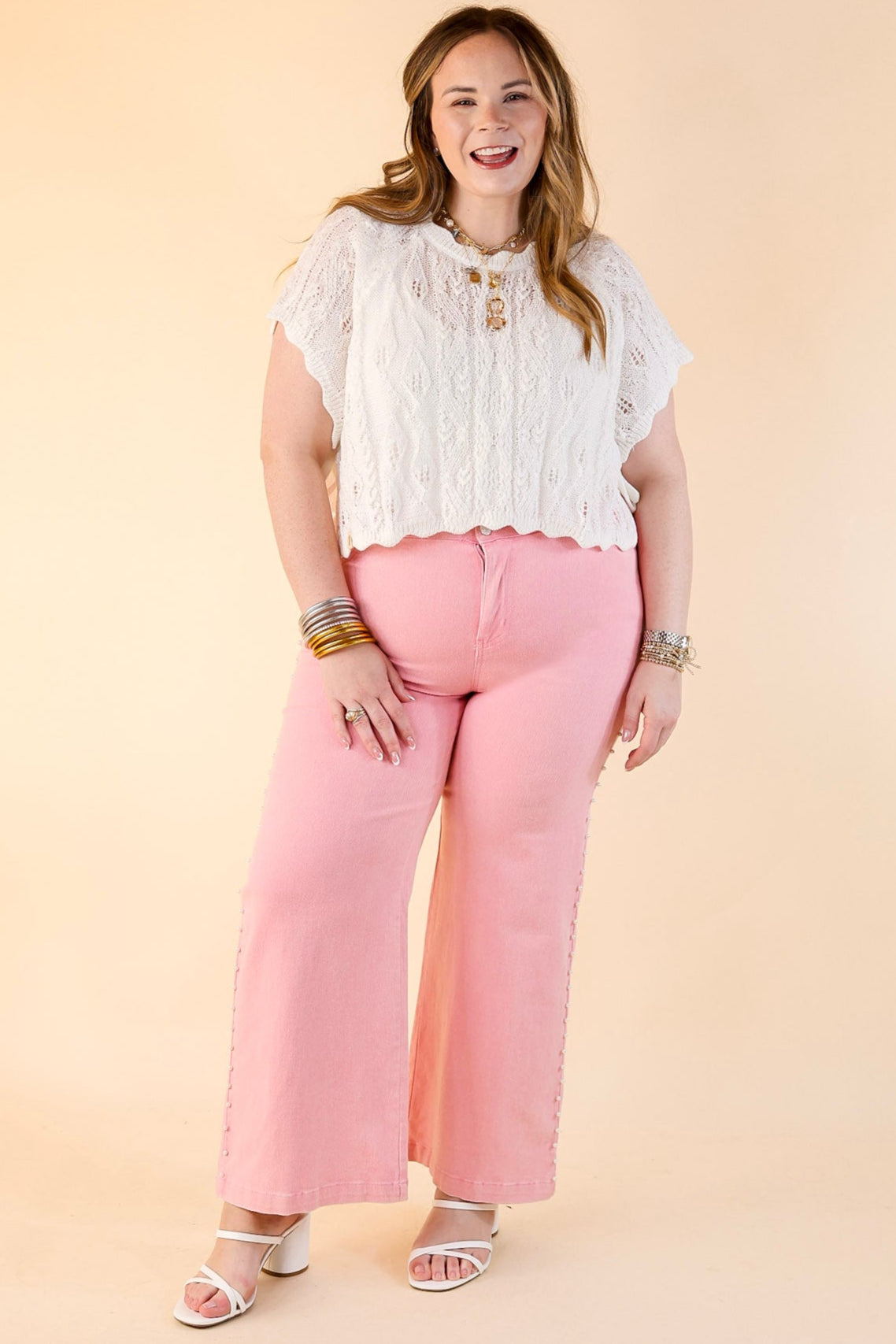 Sunny Stroll Cropped Wide Leg Jean with Pearls in Pink