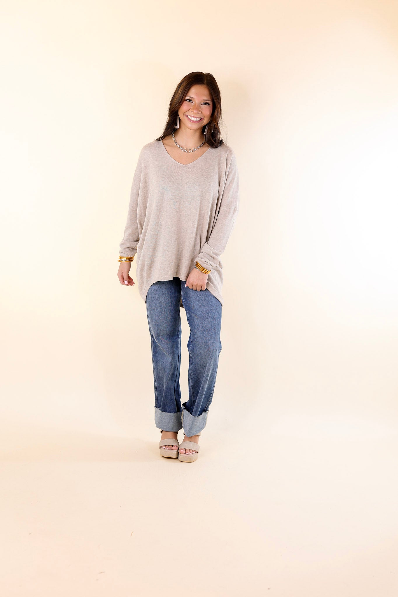 Sweater Weather Lightweight V Neck Sweater in Oyster Beige