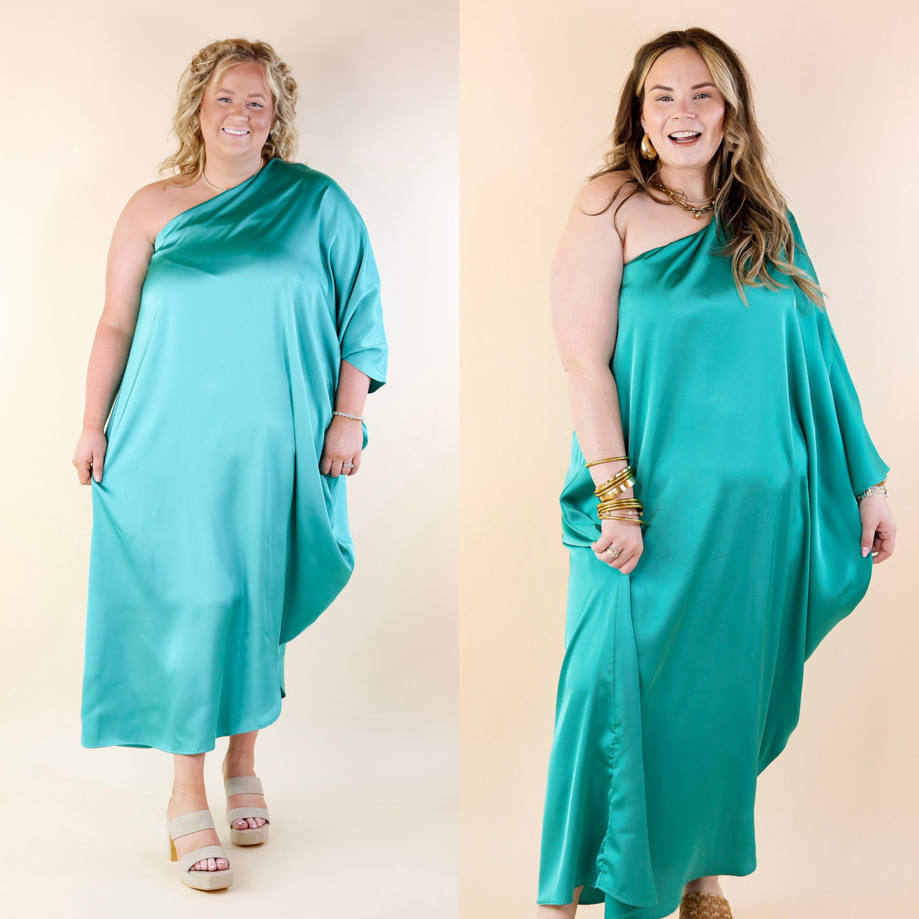Sweet Romance One Shoulder Satin Drape Midi Dress in Turquoise - Giddy Up Glamour Boutique