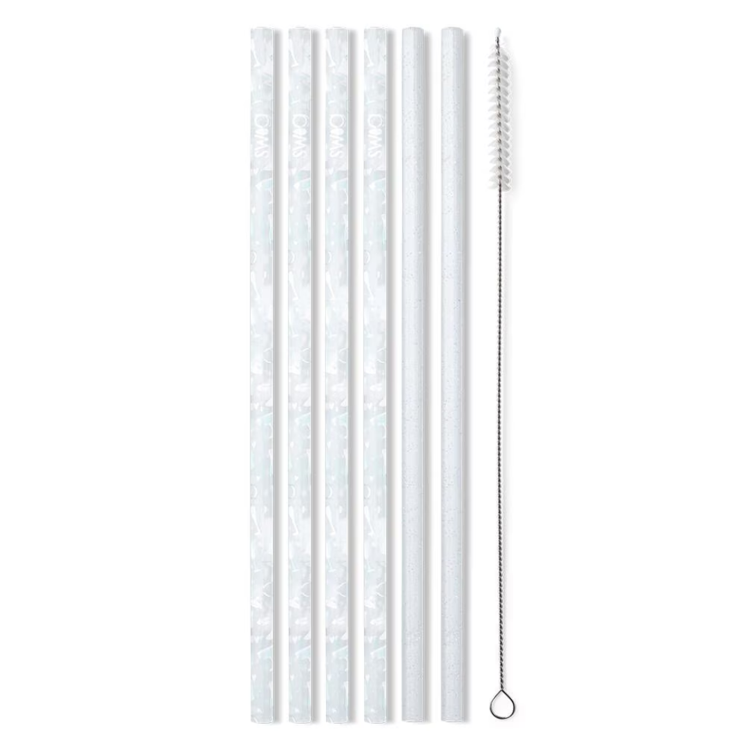 - 4 printed straws, 2 glitter straws, and 1 cleaning brush